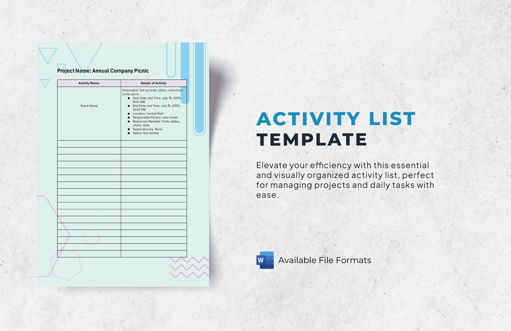 One of the best things about using an activities list template is that it helps you see everything at a glance. You can easily visualize what you need to do and when, making it easier to plan your day or week effectively.