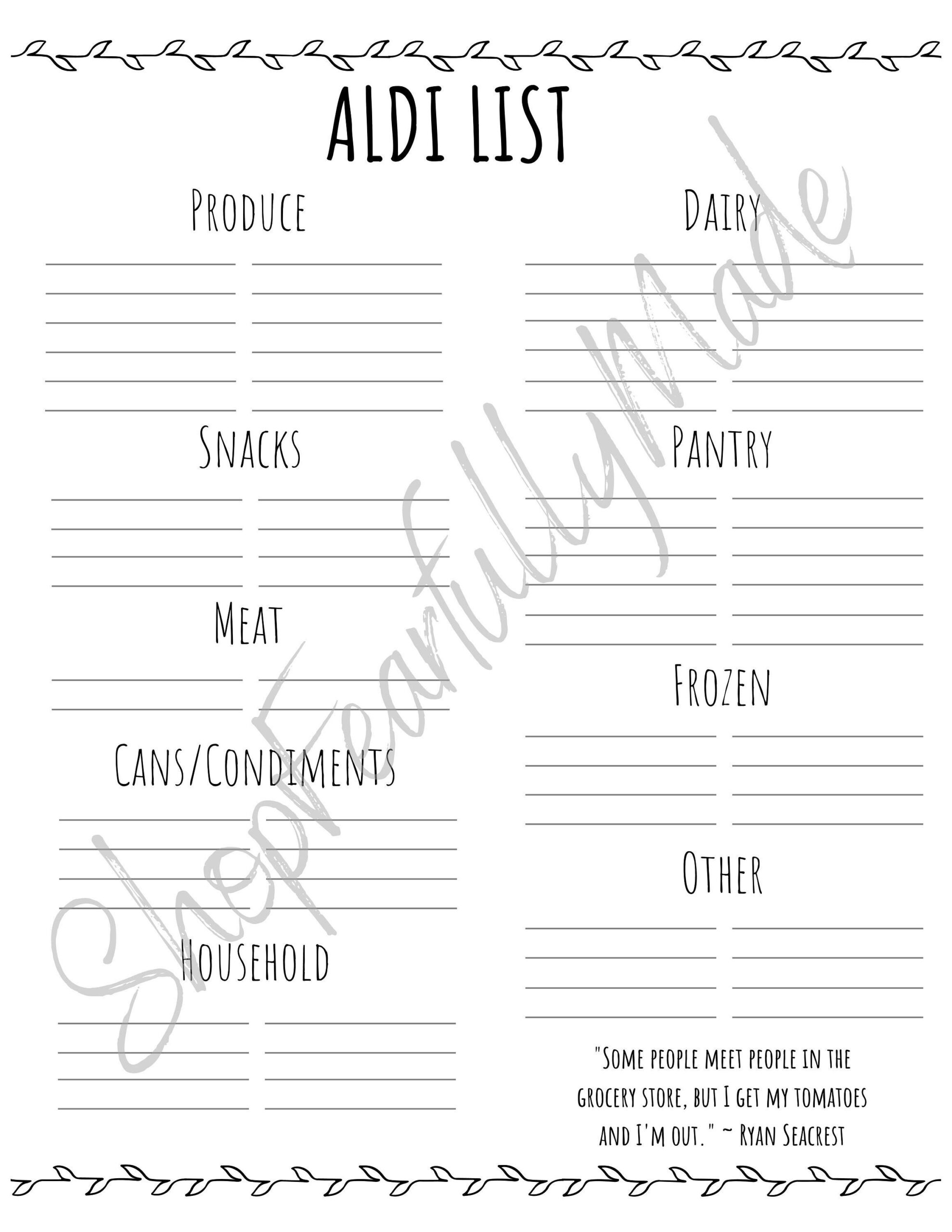 Simply download and print out our Aldi grocery list template, and you’ll have a handy checklist of all the essentials you need to pick up on your next trip to the store. Say goodbye to forgetting that crucial ingredient for your favorite recipe!