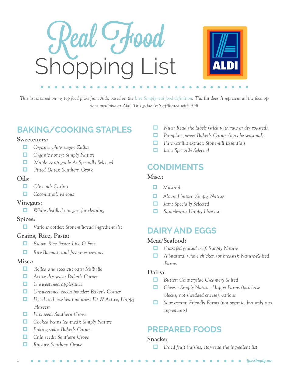 Real Food Shopping List Template Aldi Download Printable PDF Templateroller