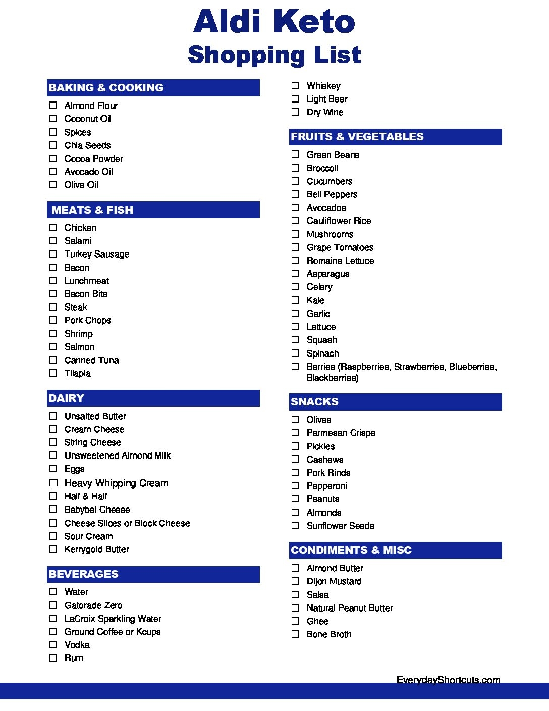 Aldi Keto Printable Shopping List Everyday Shortcuts