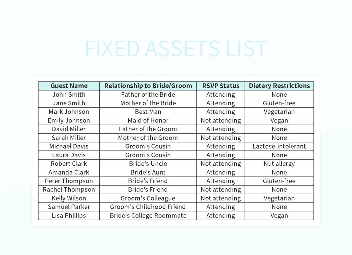 Fixed Assets List Excel Template And Google Sheets File For Free Download Slidesdocs