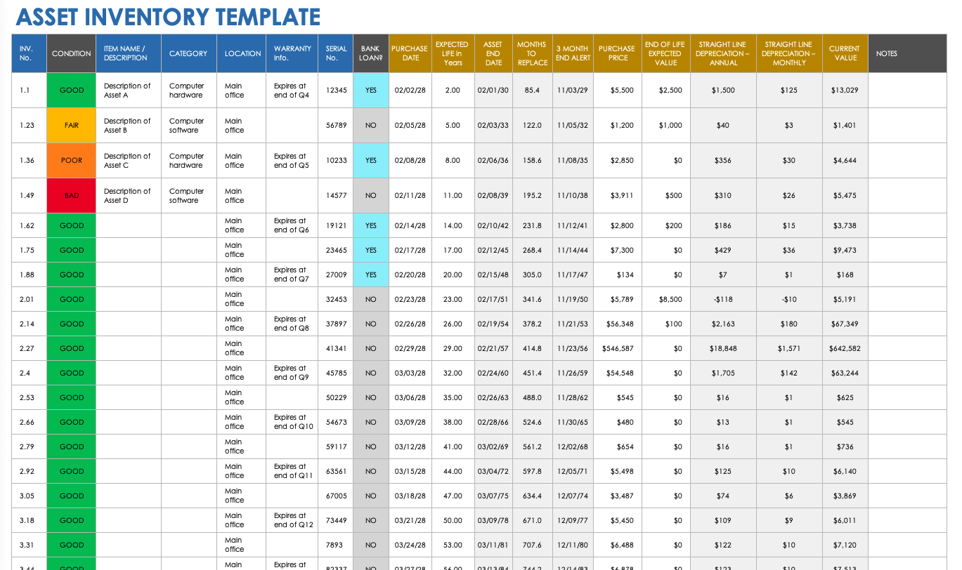 By using a template, you can create a systematic approach to managing your assets, which can save you time and effort in the long run. You can customize the template to suit your specific needs and update it as needed.