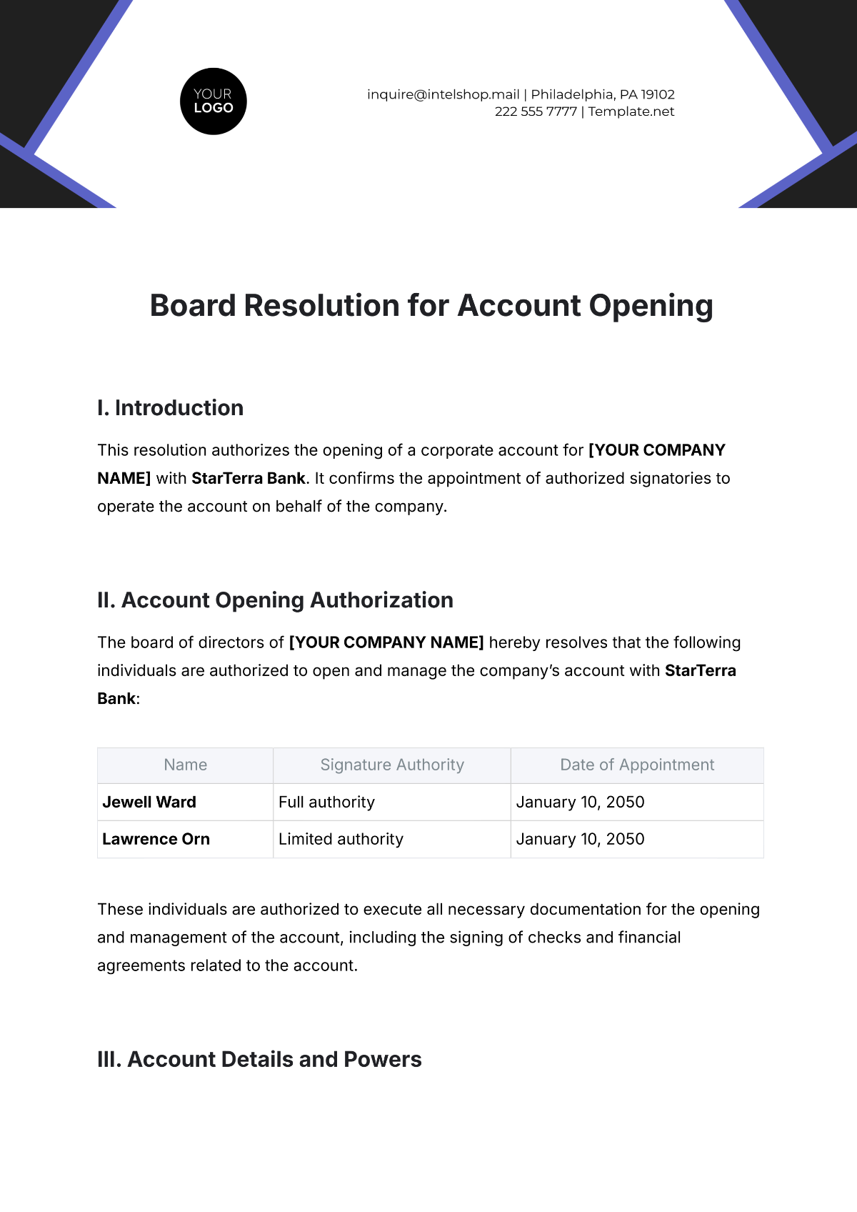 Free Board Resolution For Authorized Signatory Template To Edit Online
