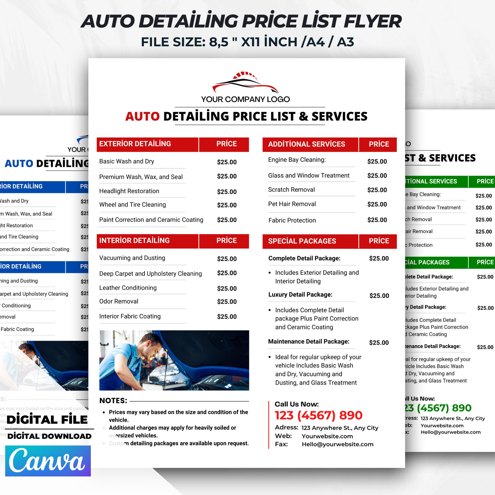 Auto Detailing Price List Flyer Template Mobile Detailing Template Auto Detailing Price List Canva Template Automotive Services Flyer