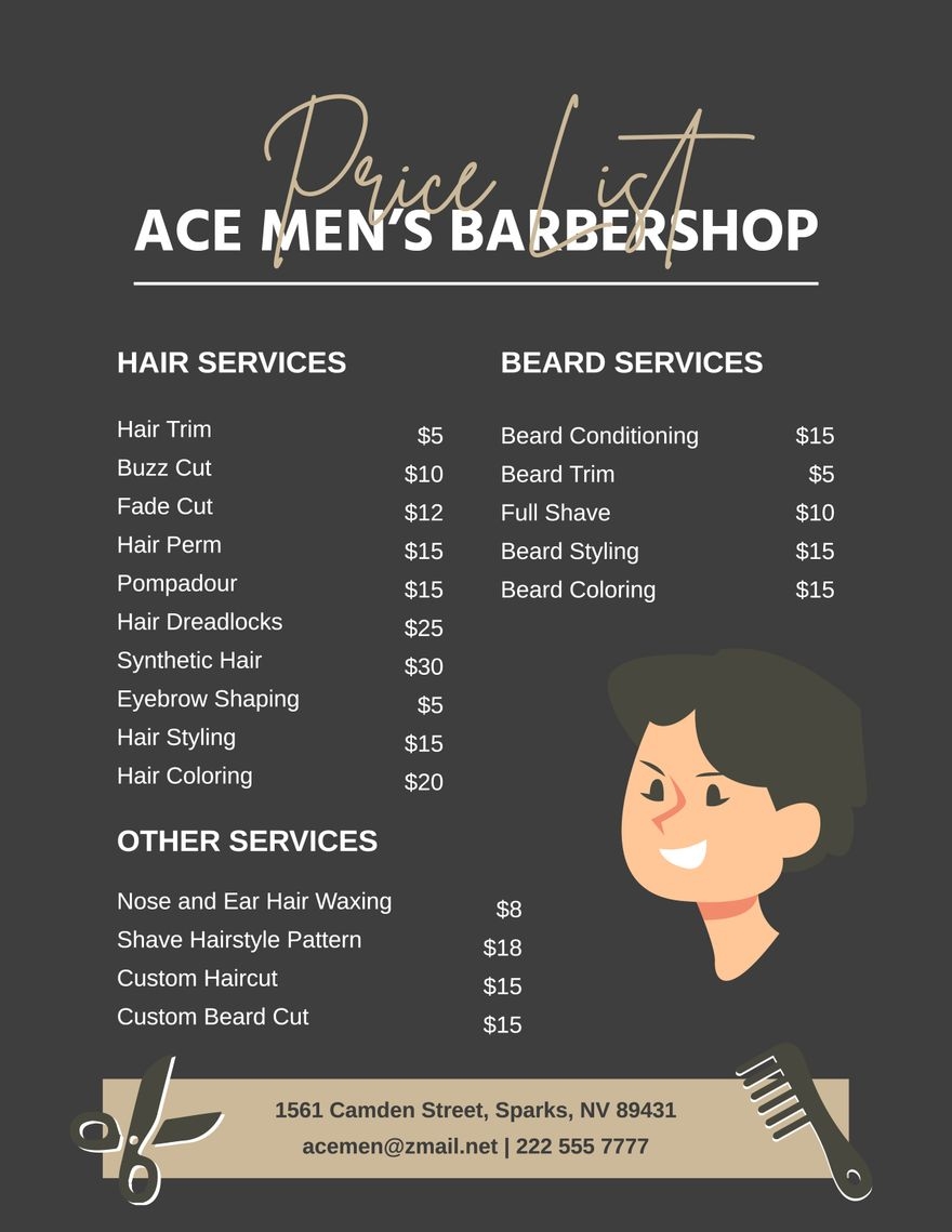 Men s Barber Shop Price List In Illustrator Word PSD Download Template