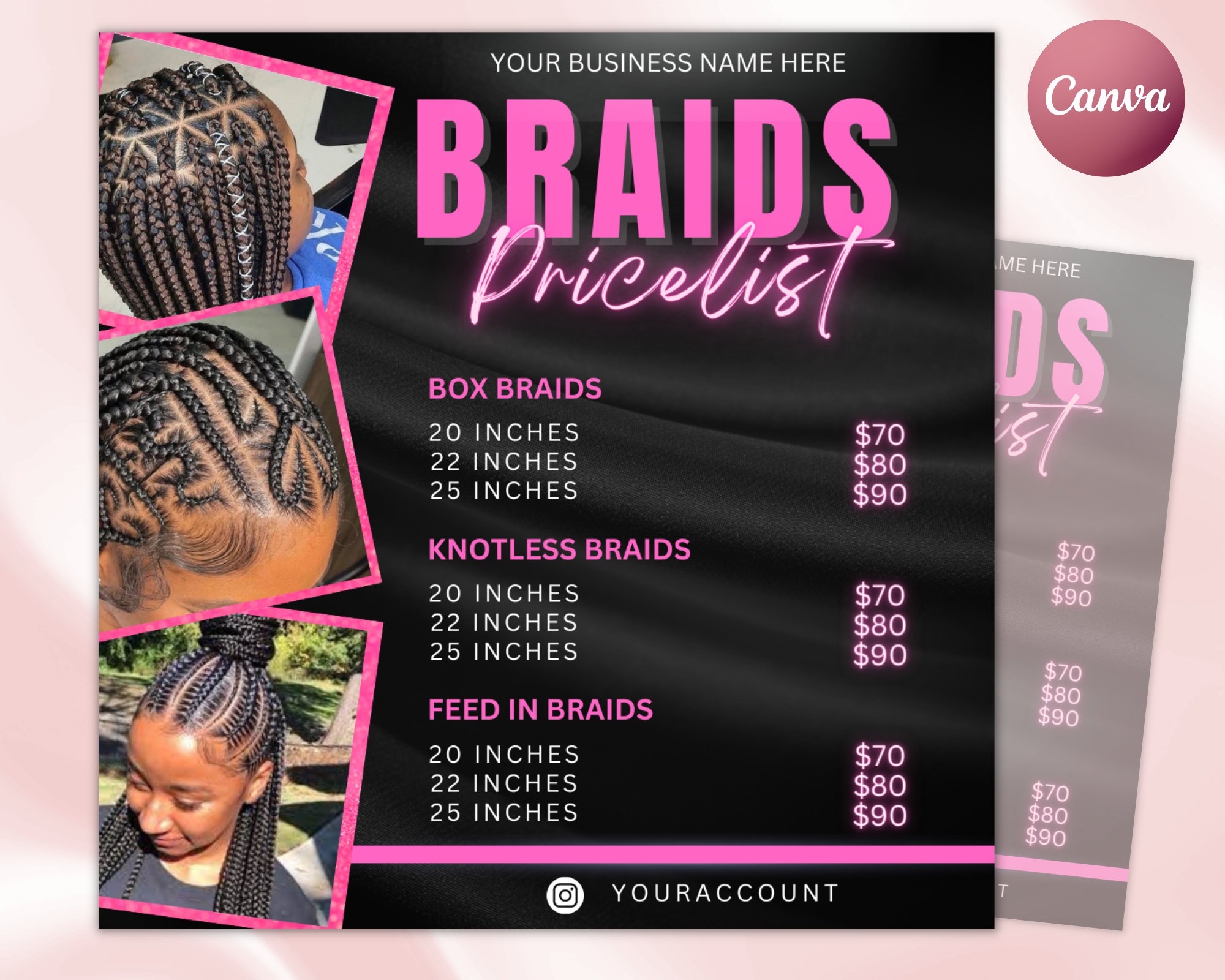 Start creating your own Braids Price List Template today and take your braiding business to the next level!