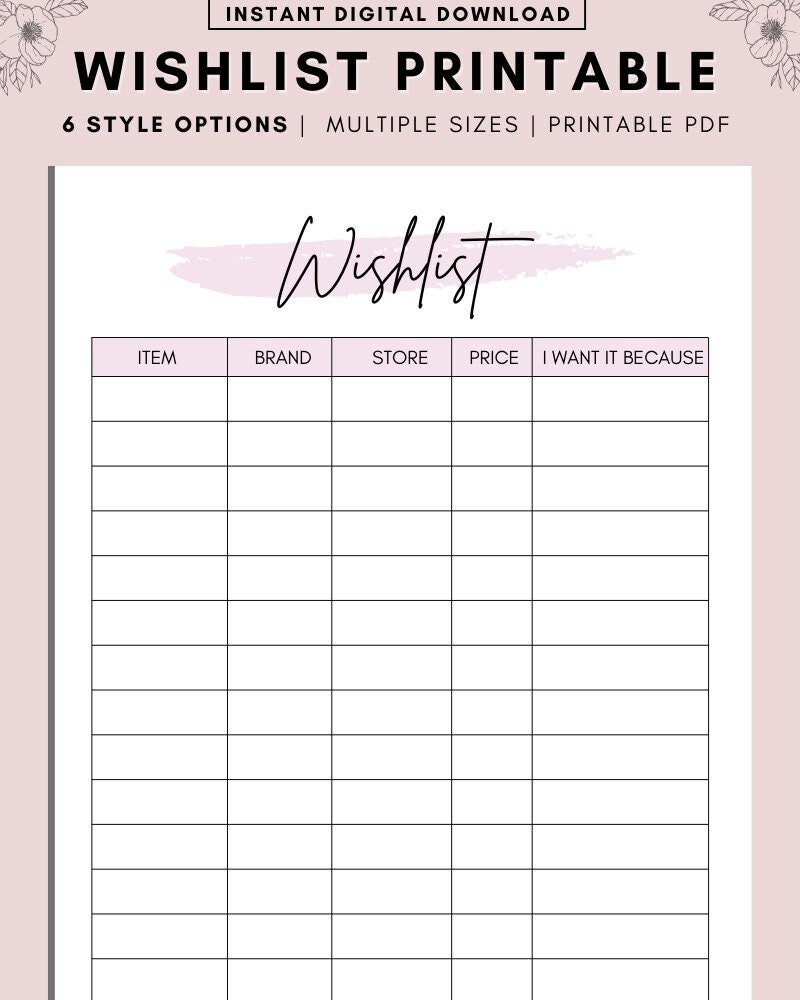 Wishlist Printable Wishlist Insert Printable Tracker Template Christmas Birthday Holiday Shopping Wish List Gifts For Me Make A Wish Etsy