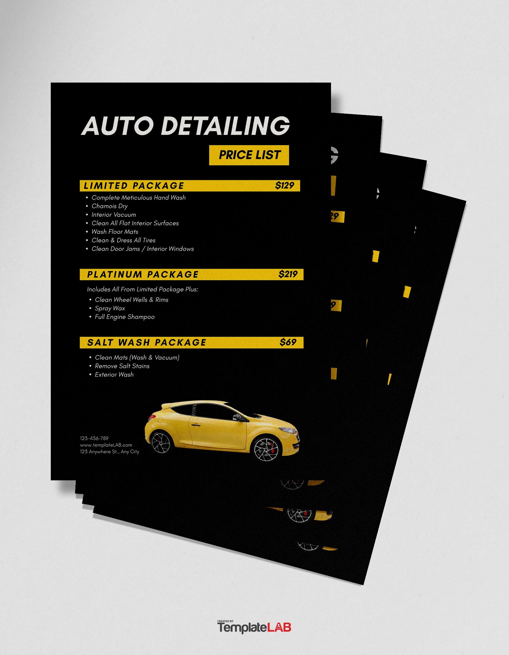 Car Wash Price List Template Free