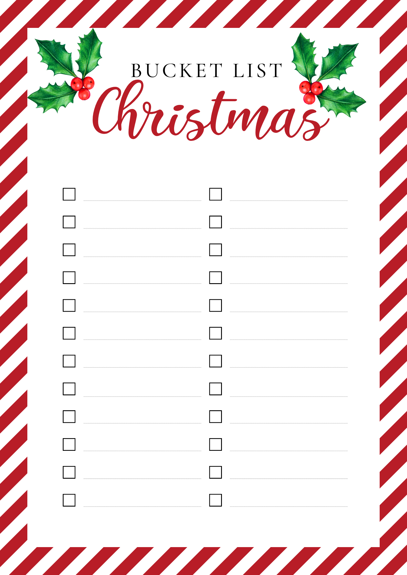 Christmas Bucket List Free Printable Blank