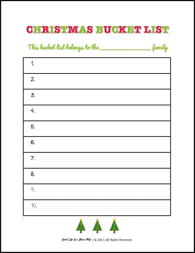 Christmas Bucket List Free Printable Good Life Of A Housewife