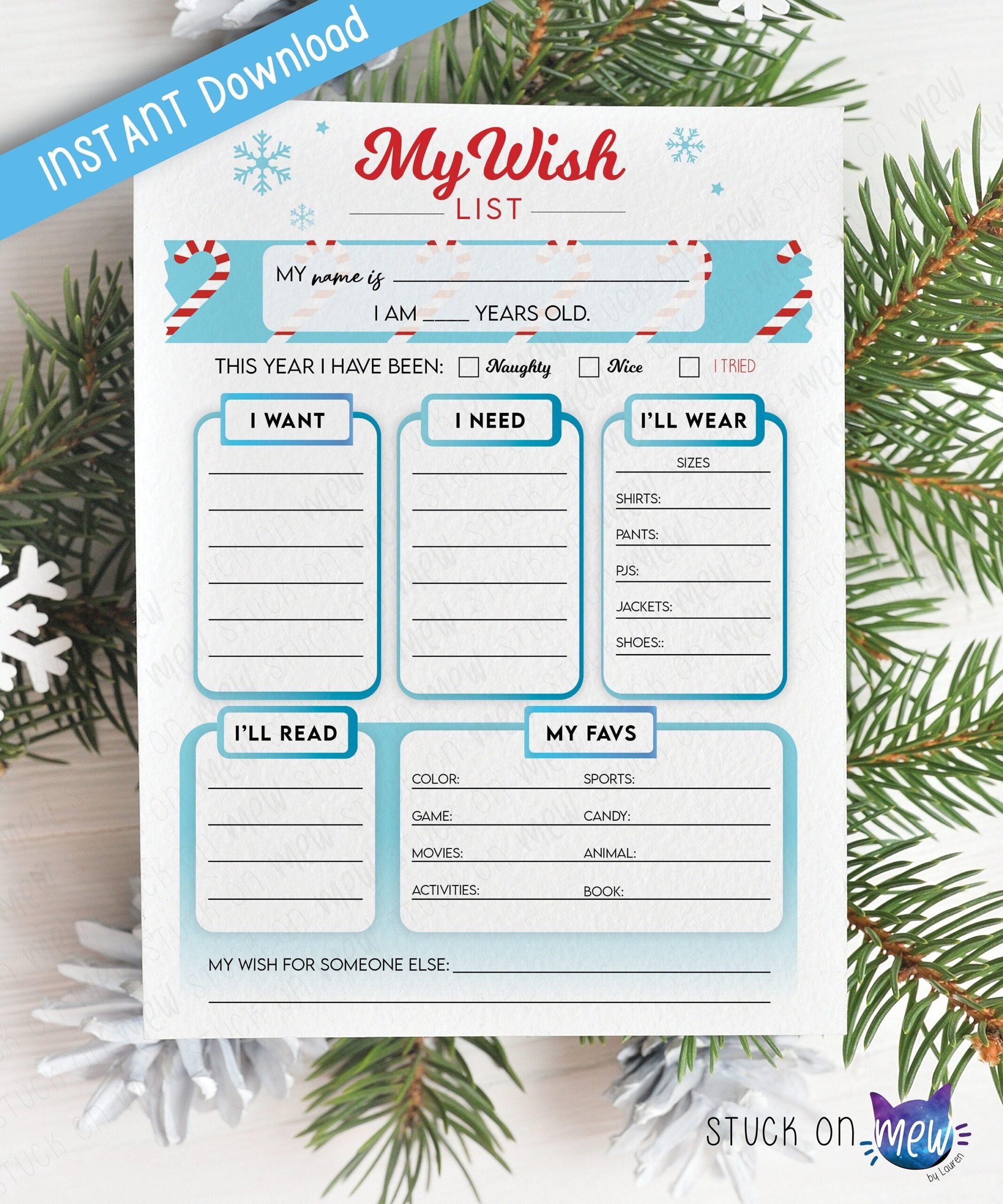 Printable Christmas Gift Wish List Template My Wish List Christmas Gift List Gift Ideas For Christmas Holiday Wish List Present Ideas Etsy UK