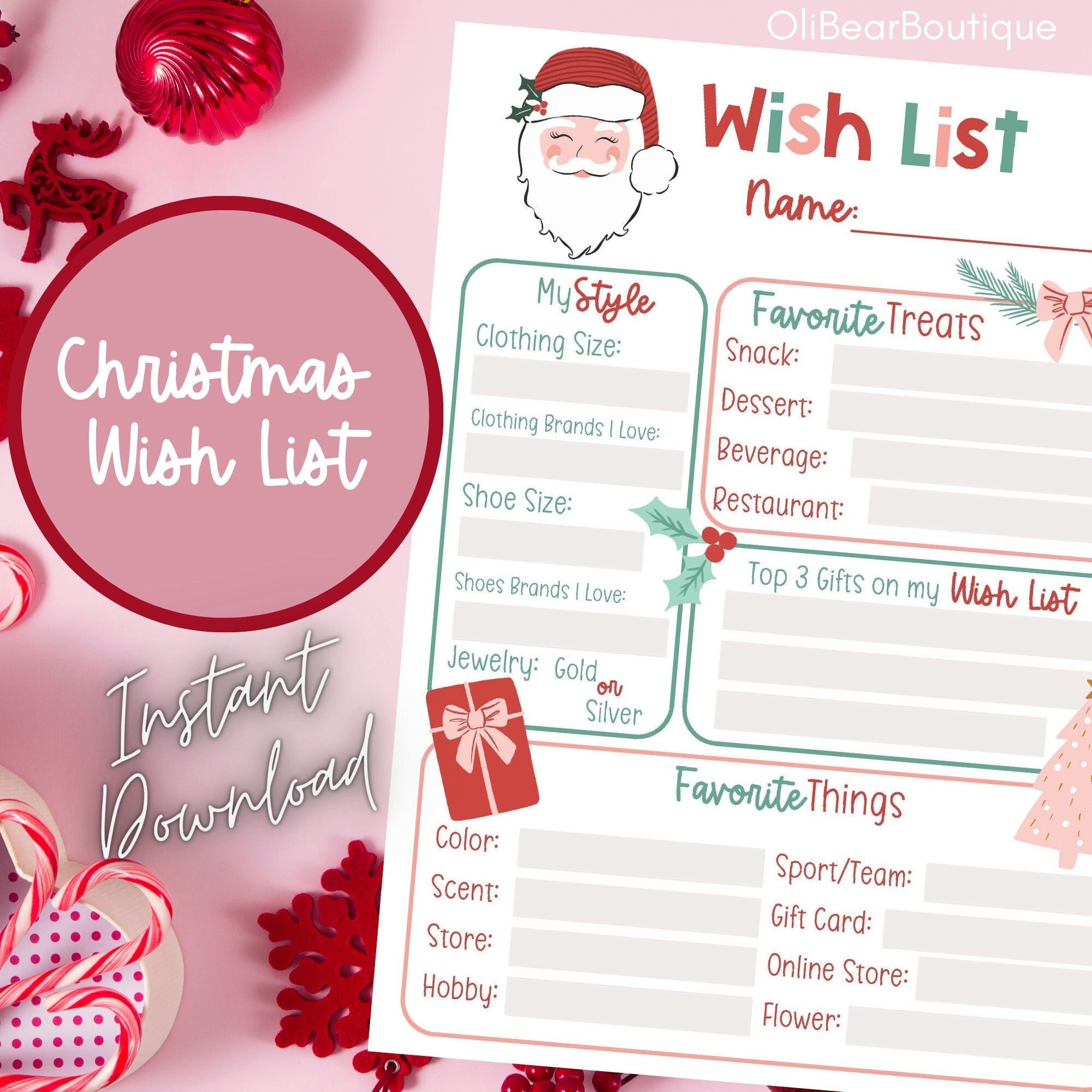 Christmas Wish Lists Printable Secret Santa Letter To Santa Wish List Adult Wish List Kids Wish List Retro Christmas Etsy