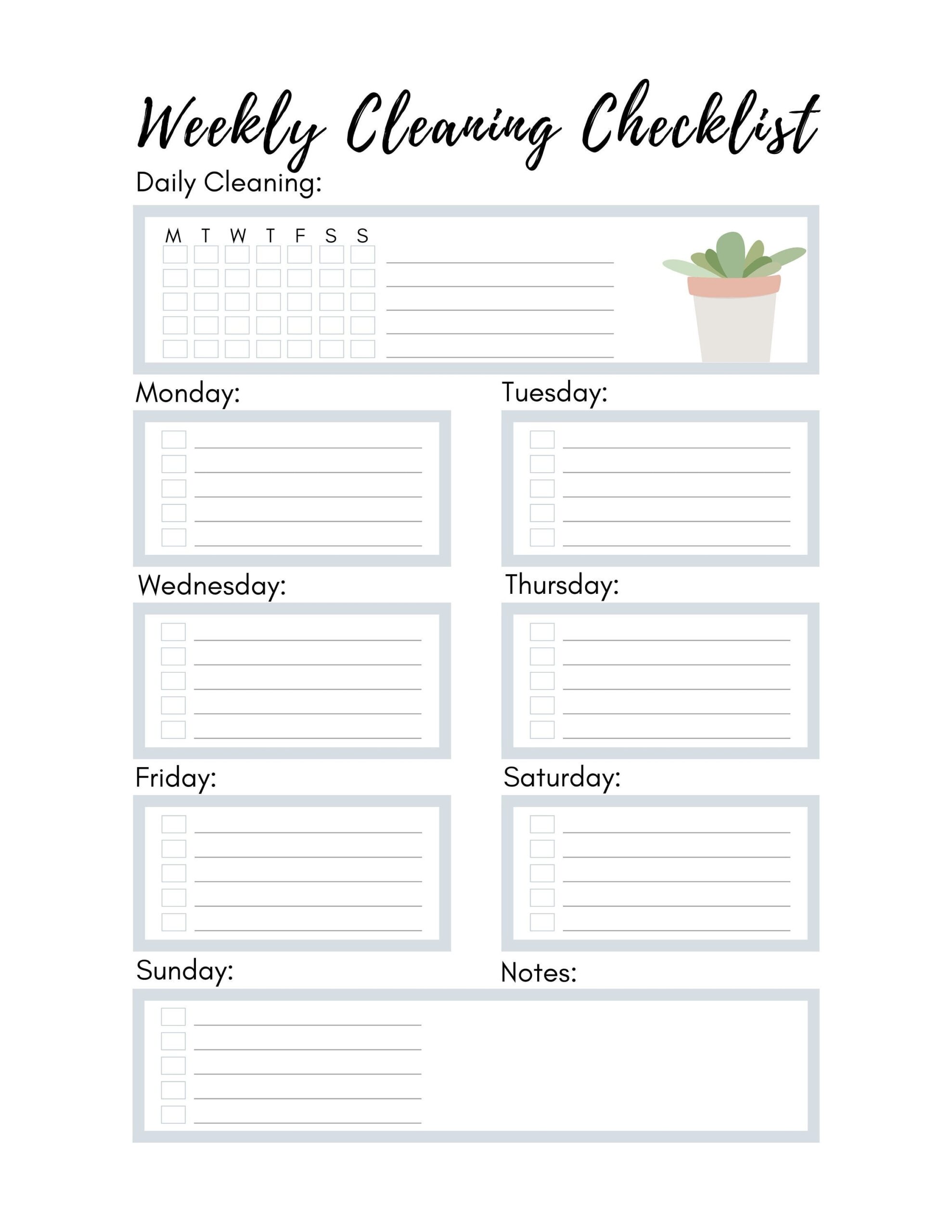 Printable Cleaning Schedule Spring Daily U0026 Weekly Checklists