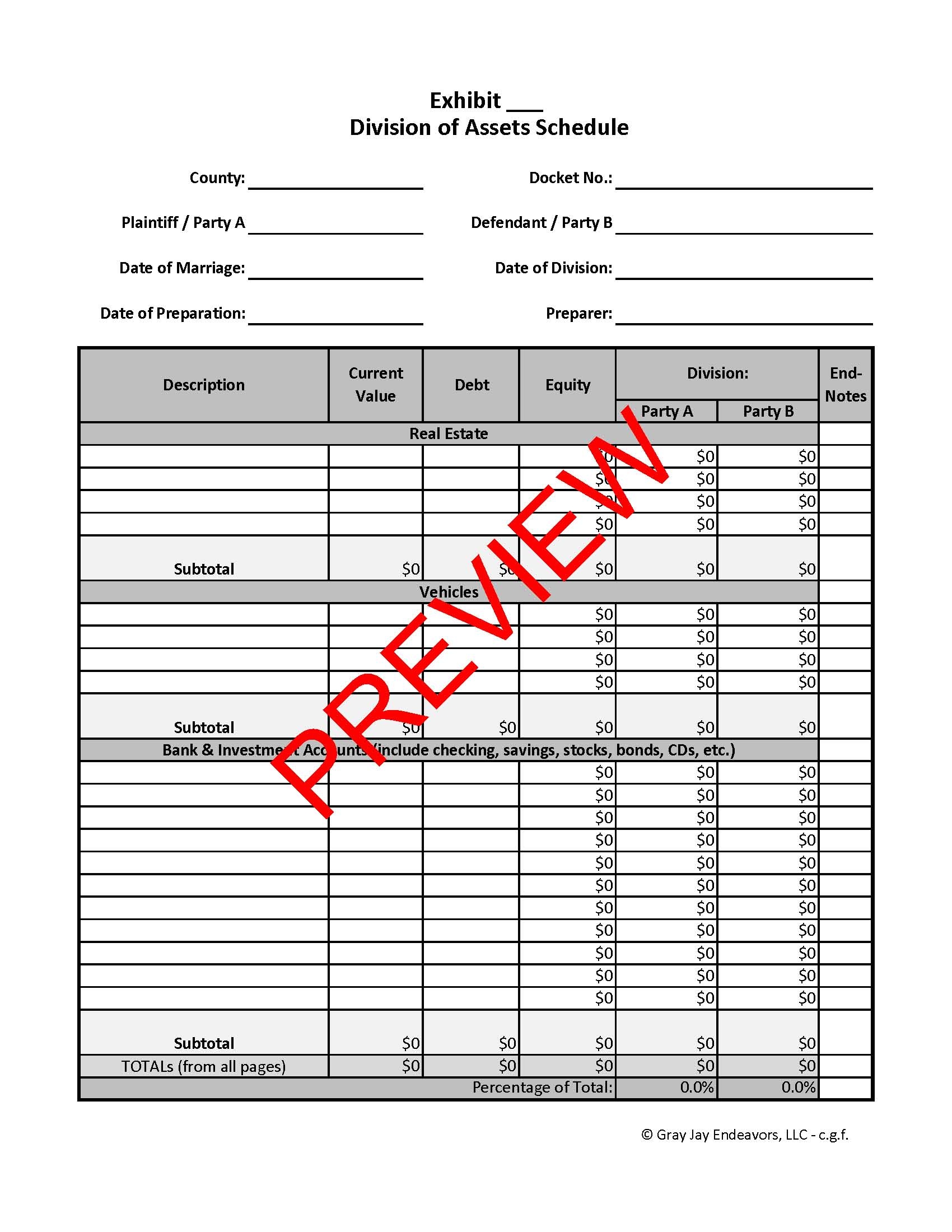Division Of Assets Spreadsheet Gray Jay Endeavors LLC