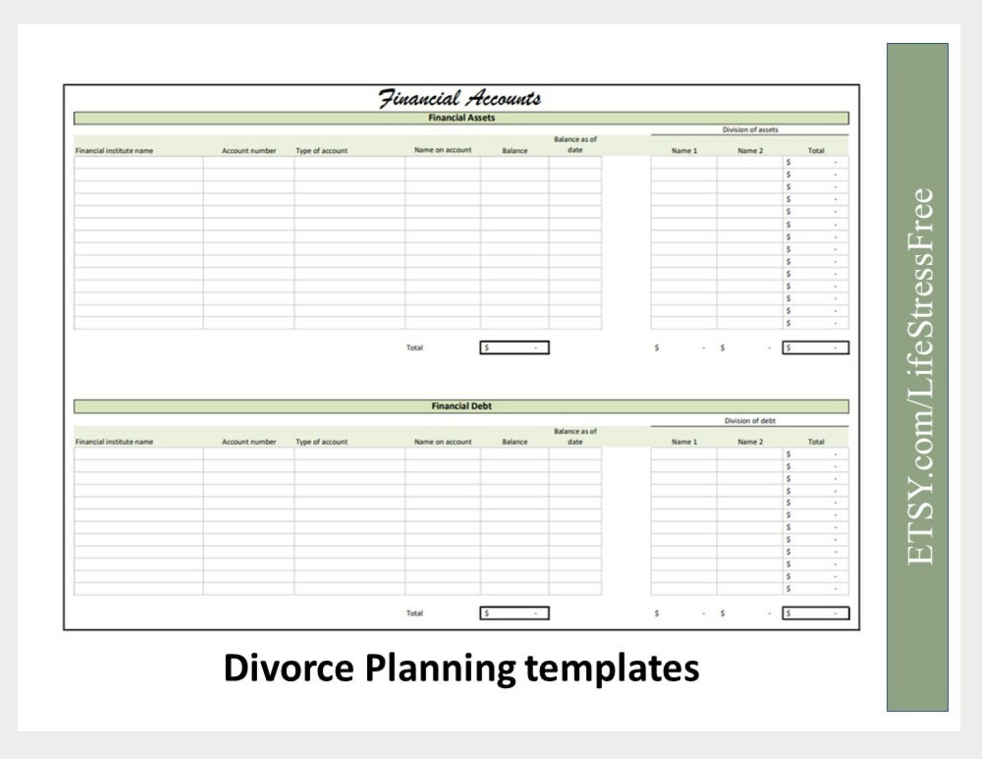 Divorce Asset List Template