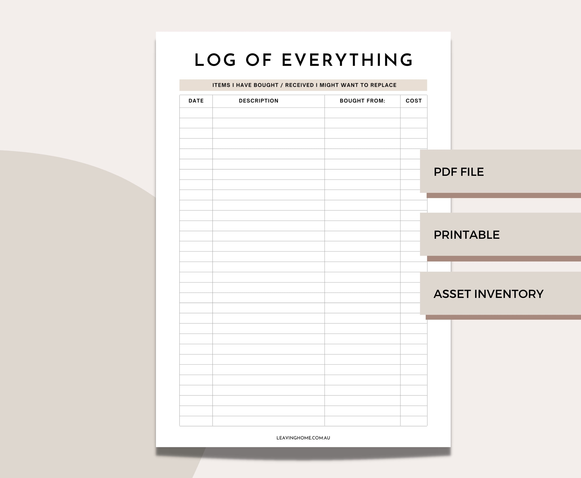 Everything I Own Printable Log Of Everything Divorce List