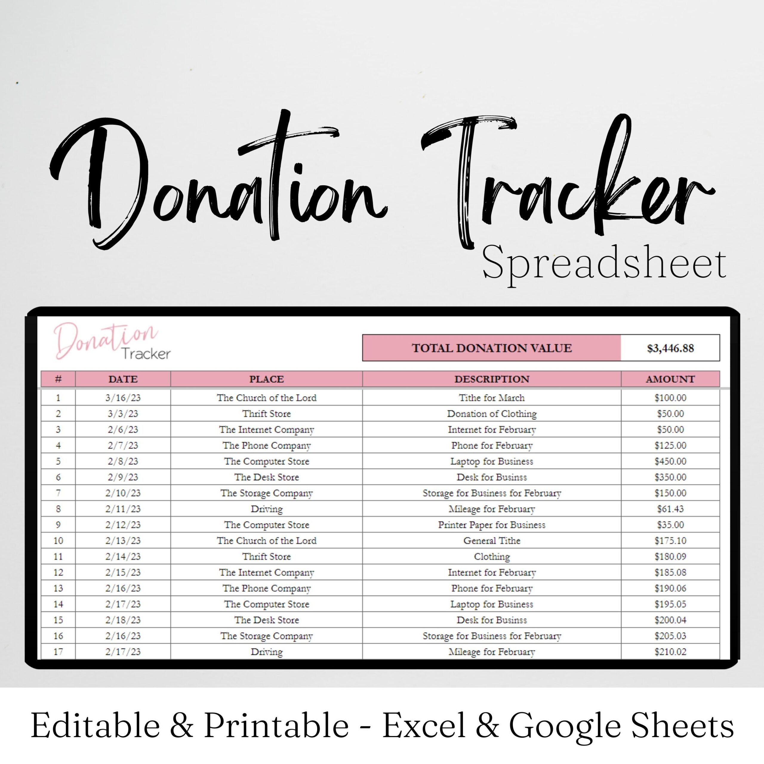 Donation Form Donation Tracker Donation Log Donation Sheet Financial Tracker Printable US Letter Size Digital Download