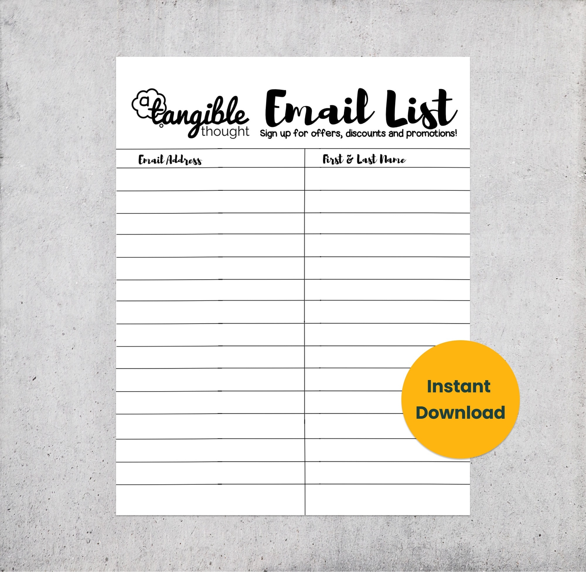 Email List Template Newsletter Sign Up Form Digital PDF Instant Download