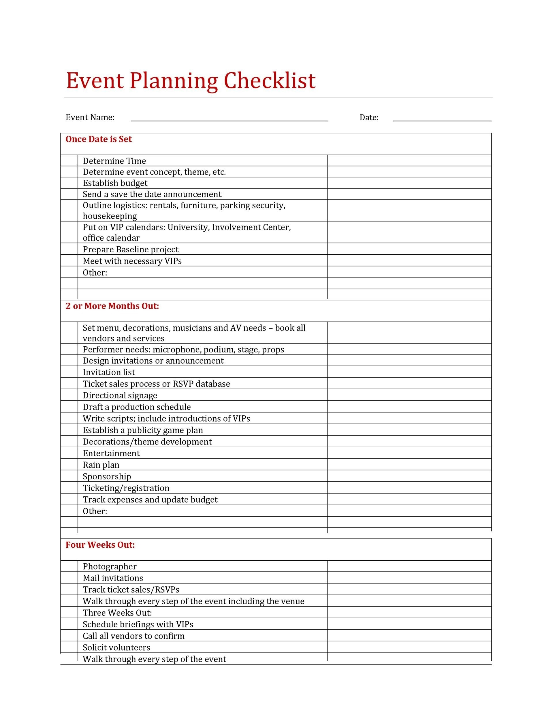 Free Printable Event Planning Templates Word PDF Excel