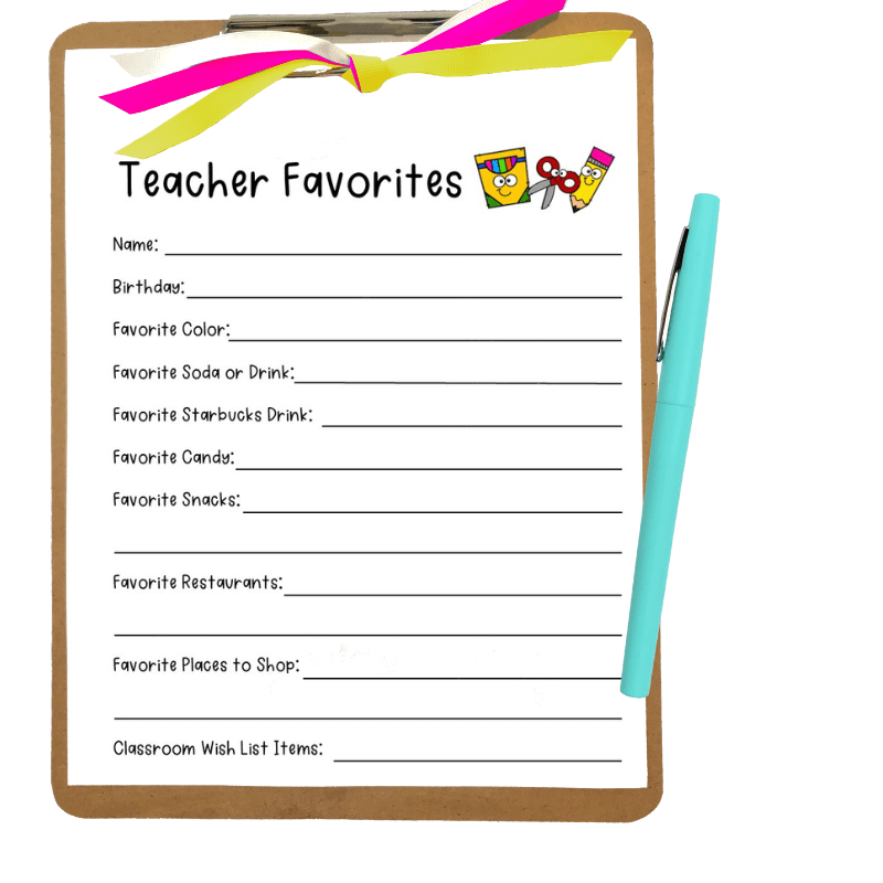 My Favorite Things List Free Printable Gift Ideas For Teachers