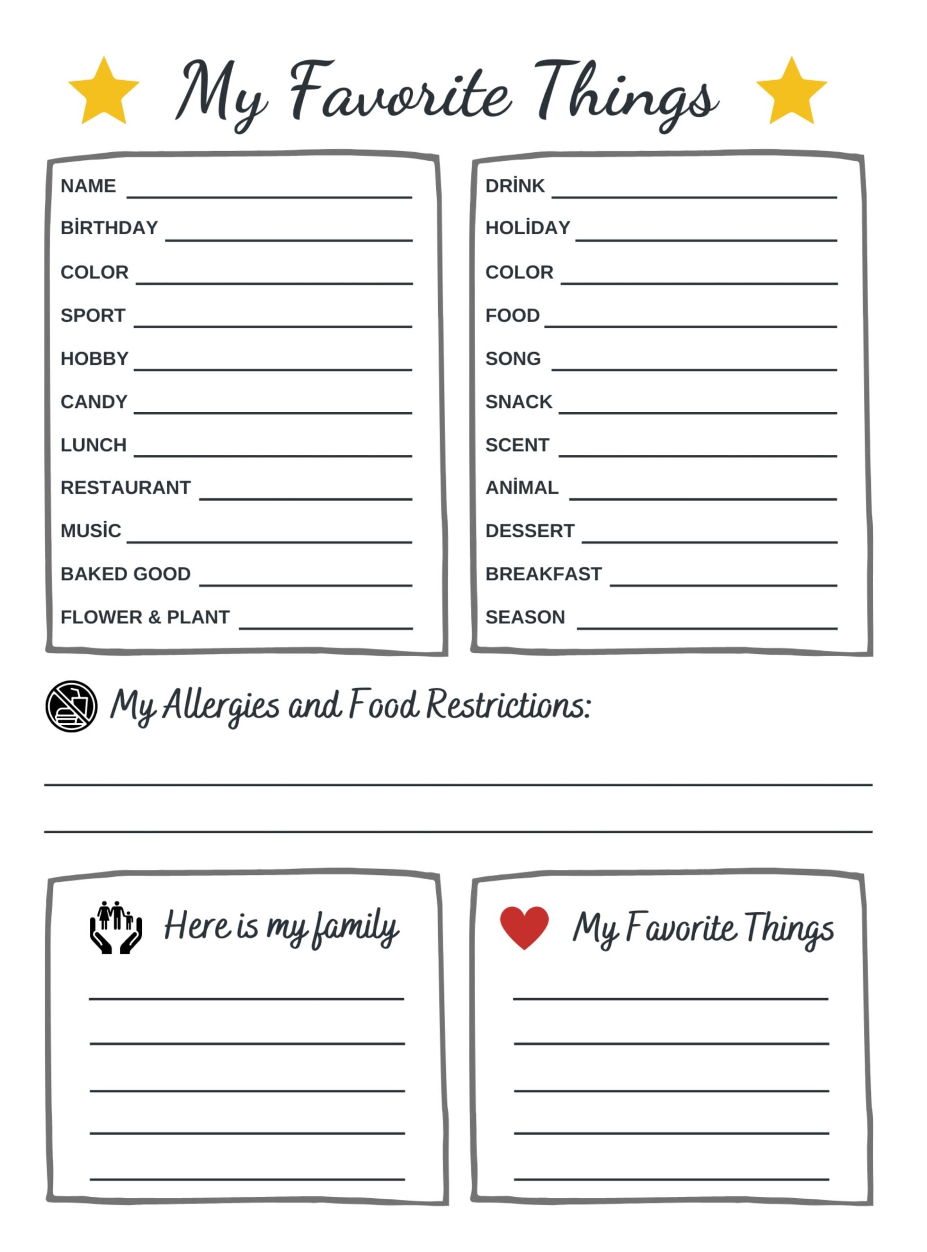 Printable Favorite Things List