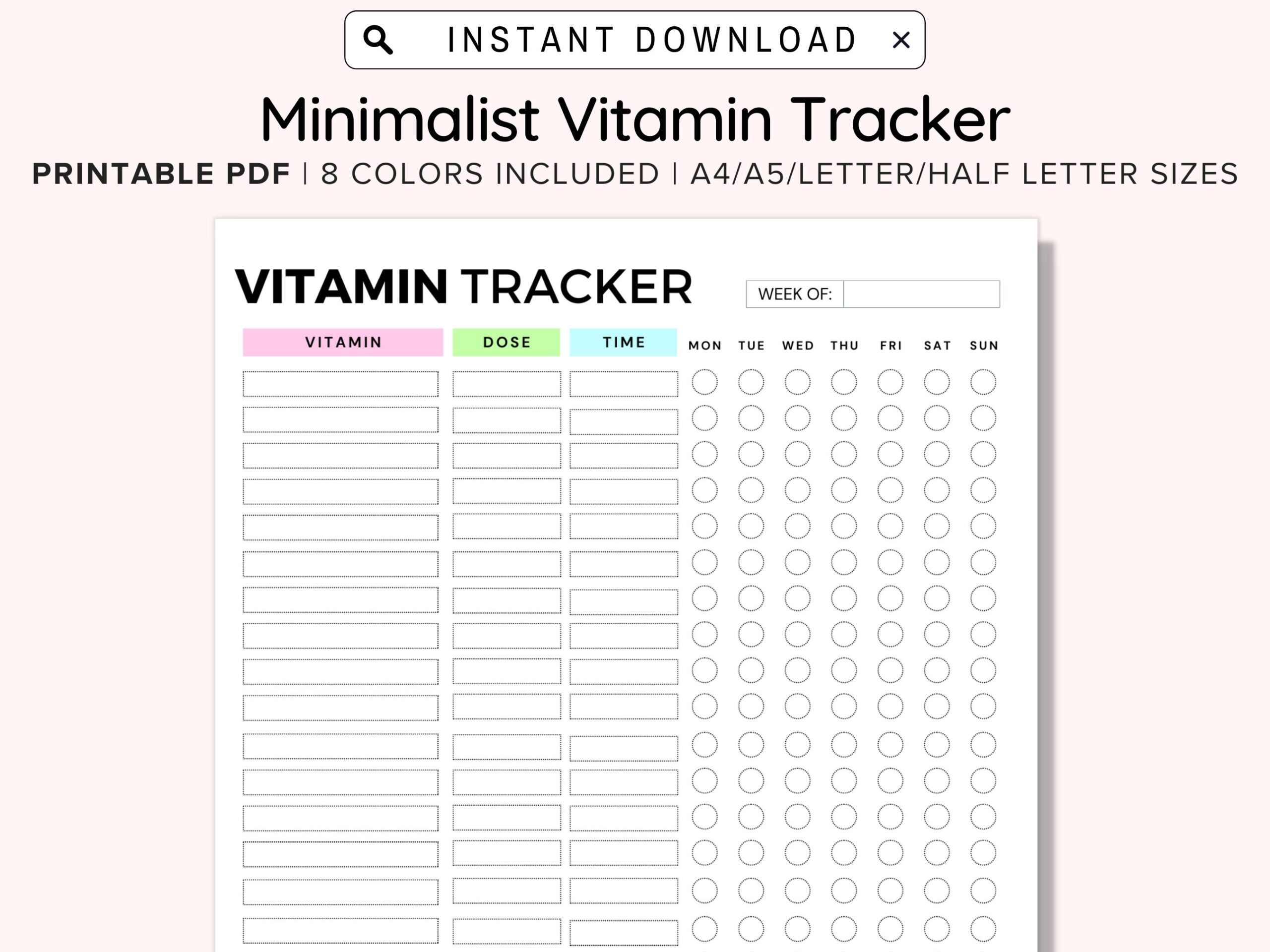 Daily Vitamin Checklist Vitamin Tracker Weekly Supplement Checklist Med Tracker Dose Time Of Day Health Printable A4 a5 letter PDF Etsy