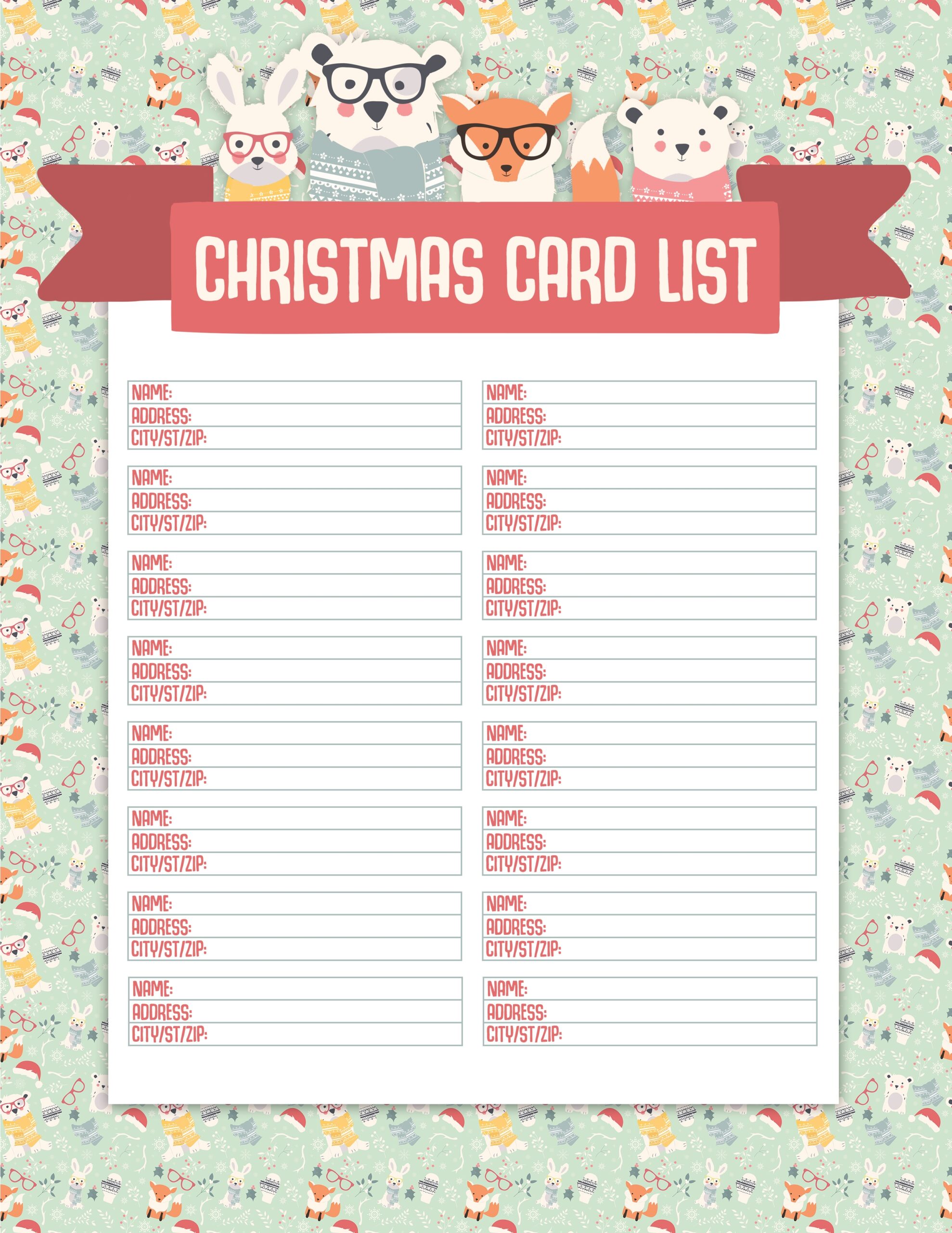 Free Printable Christmas Card List Template