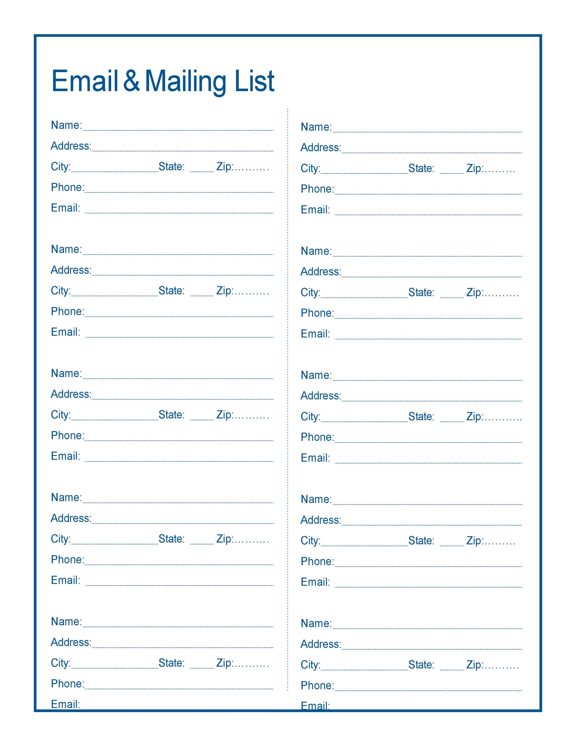 Free Printable Email List Template