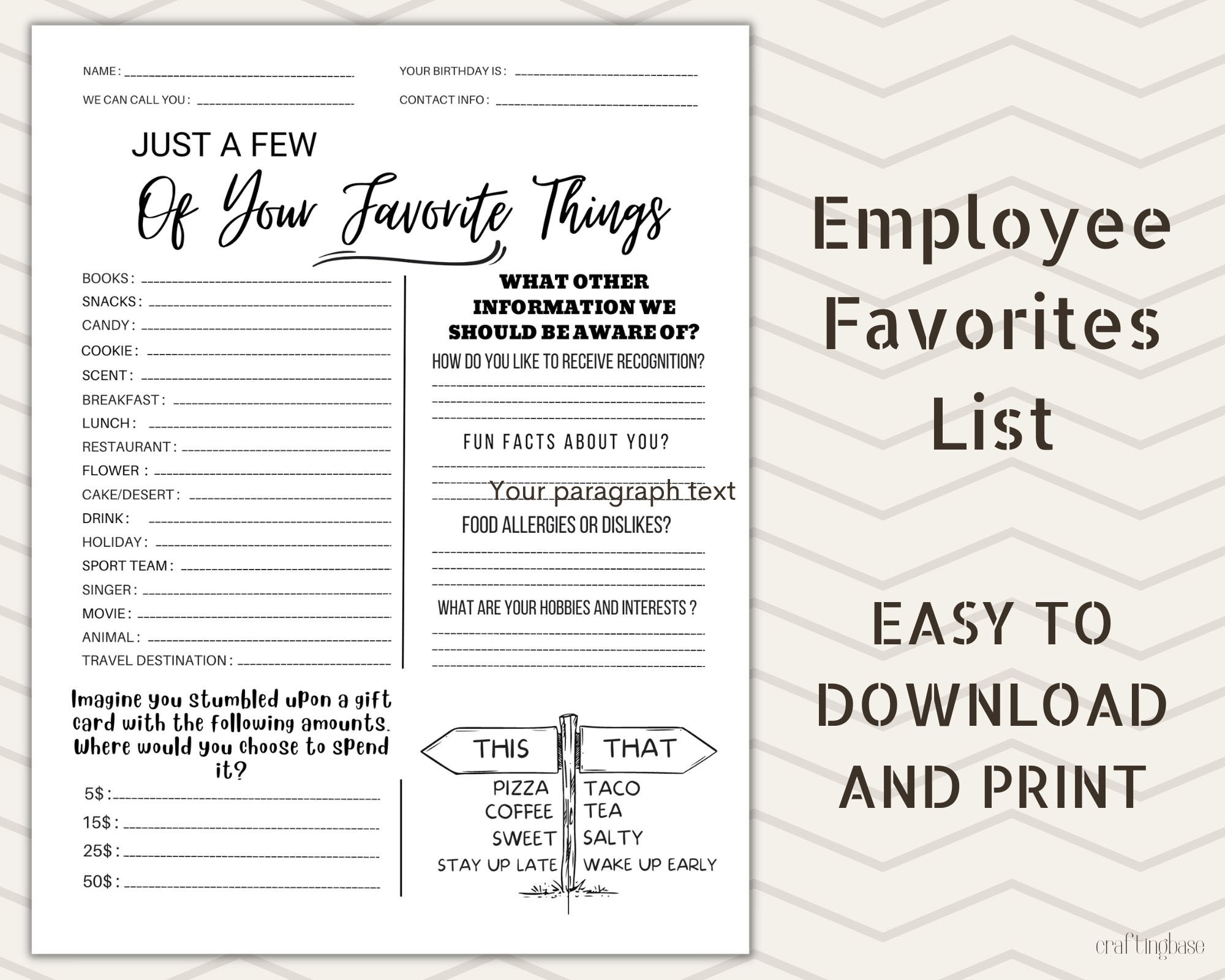 Free Printable Employee Favorite Things List