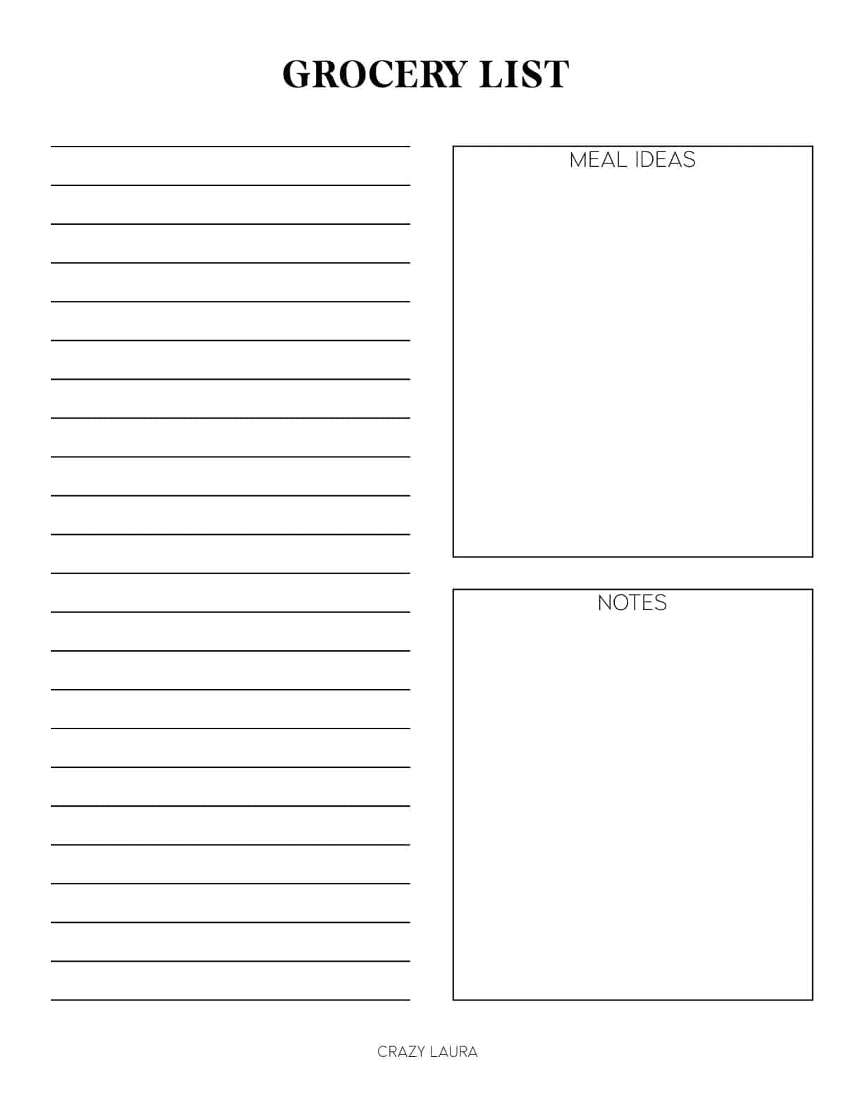 Free Grocery List Printable With Three Versions Crazy Laura