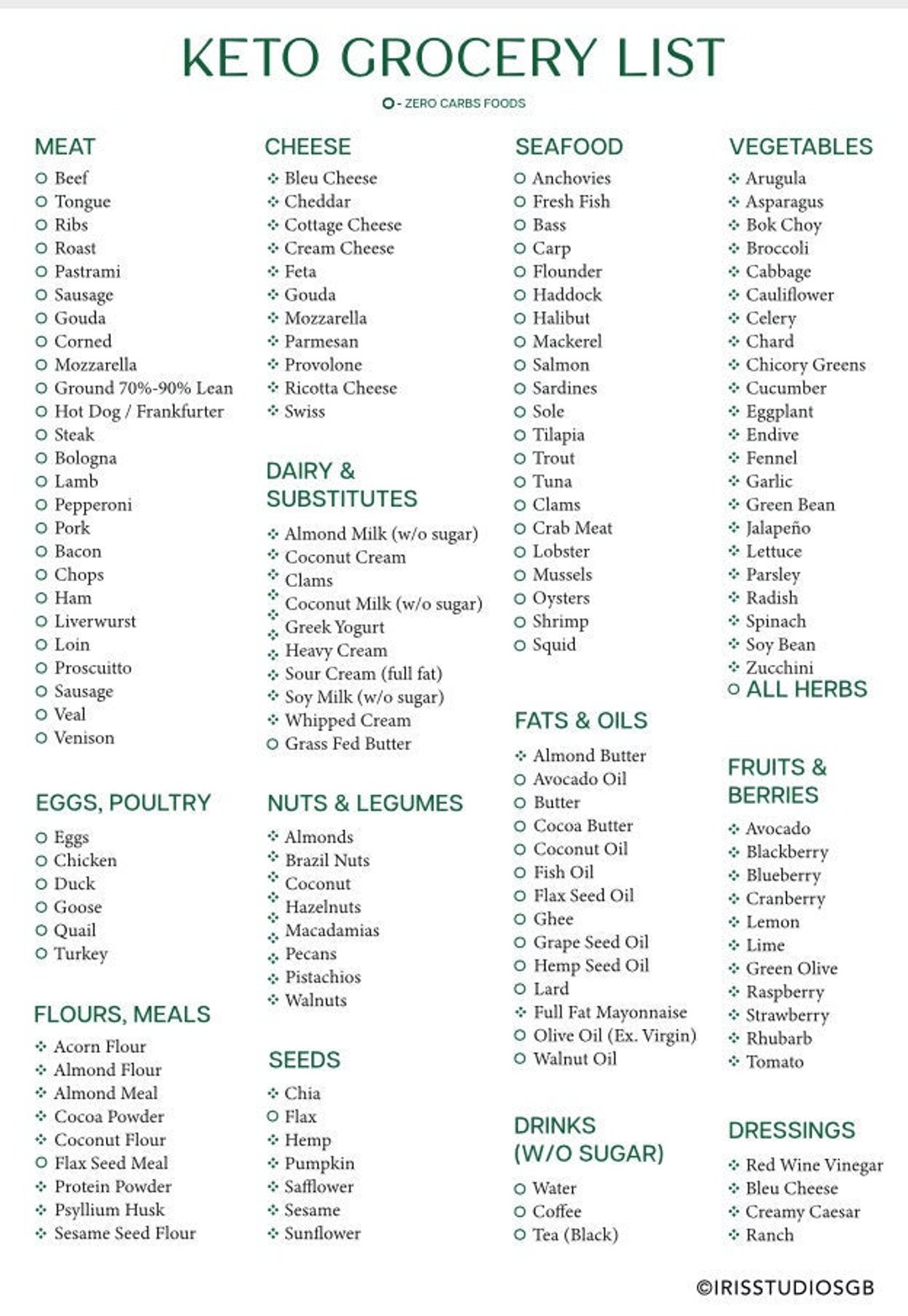 Keto Grocery List Printable Keto Food List Low Carb Food List Keto Tracker Instant Download Etsy