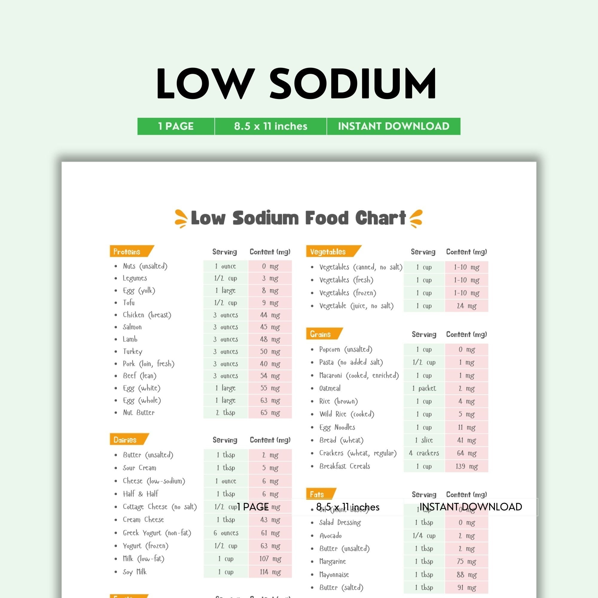 Low Sodium Food Chart Low Salt Food List Printable High Sodium Foods To Avoid Diet For Hypertension High Blood Pressure Kidney Disease Diet Etsy