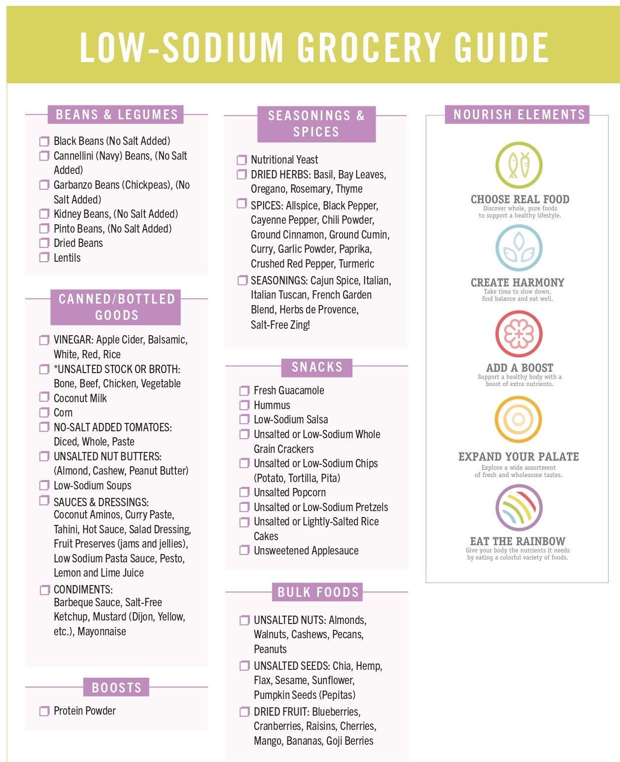 Don’t let sodium sneak its way into your meals unnoticed. Use our free printable low sodium food list to stay on track and make better food choices for yourself and your family. Your taste buds and your body will thank you!