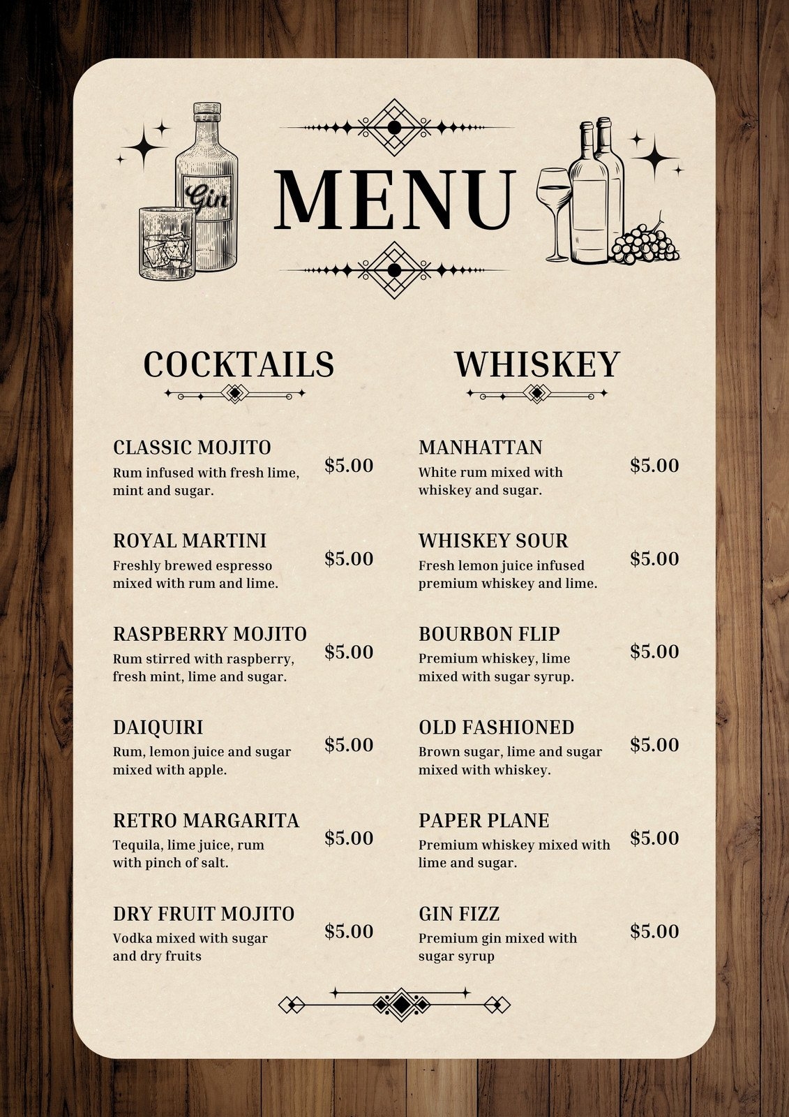 Free Printable Drink Menu Templates Word PDF Wedding Christmas