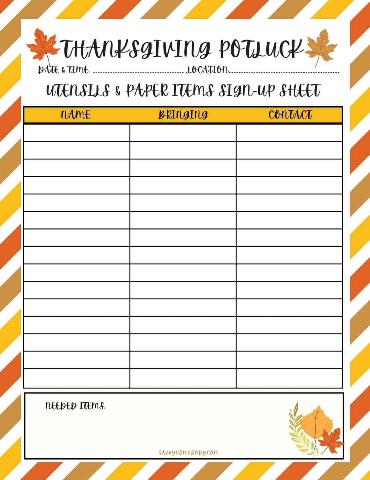 Thanksgiving Potluck Sign Up Sheets Free Printables Add A