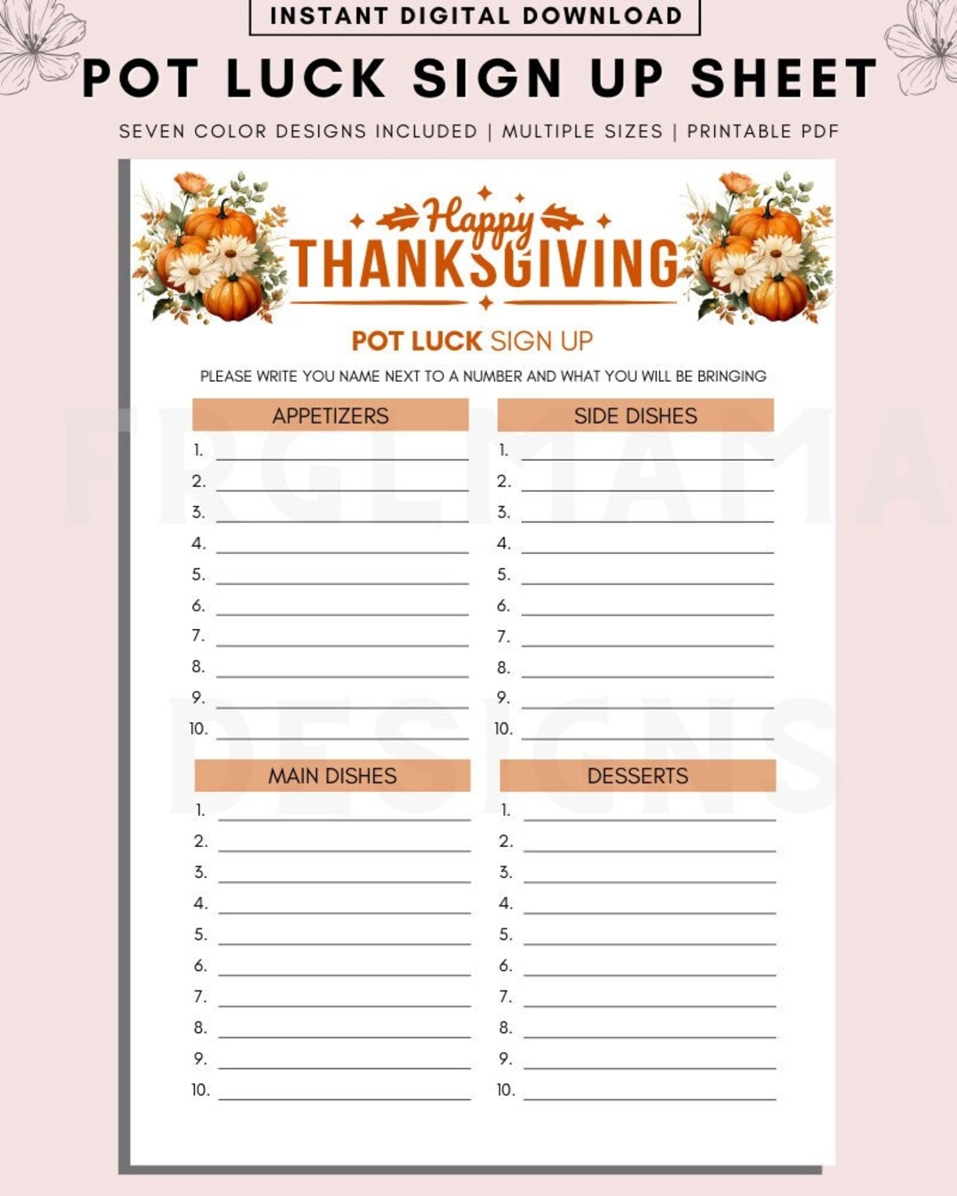 Potluck Sign Up Sheet Thanksgiving Potluck Sign Up Sheet Event Sign Up Potluck Template Thanksgiving Potluck Potluck Printable PDF Etsy