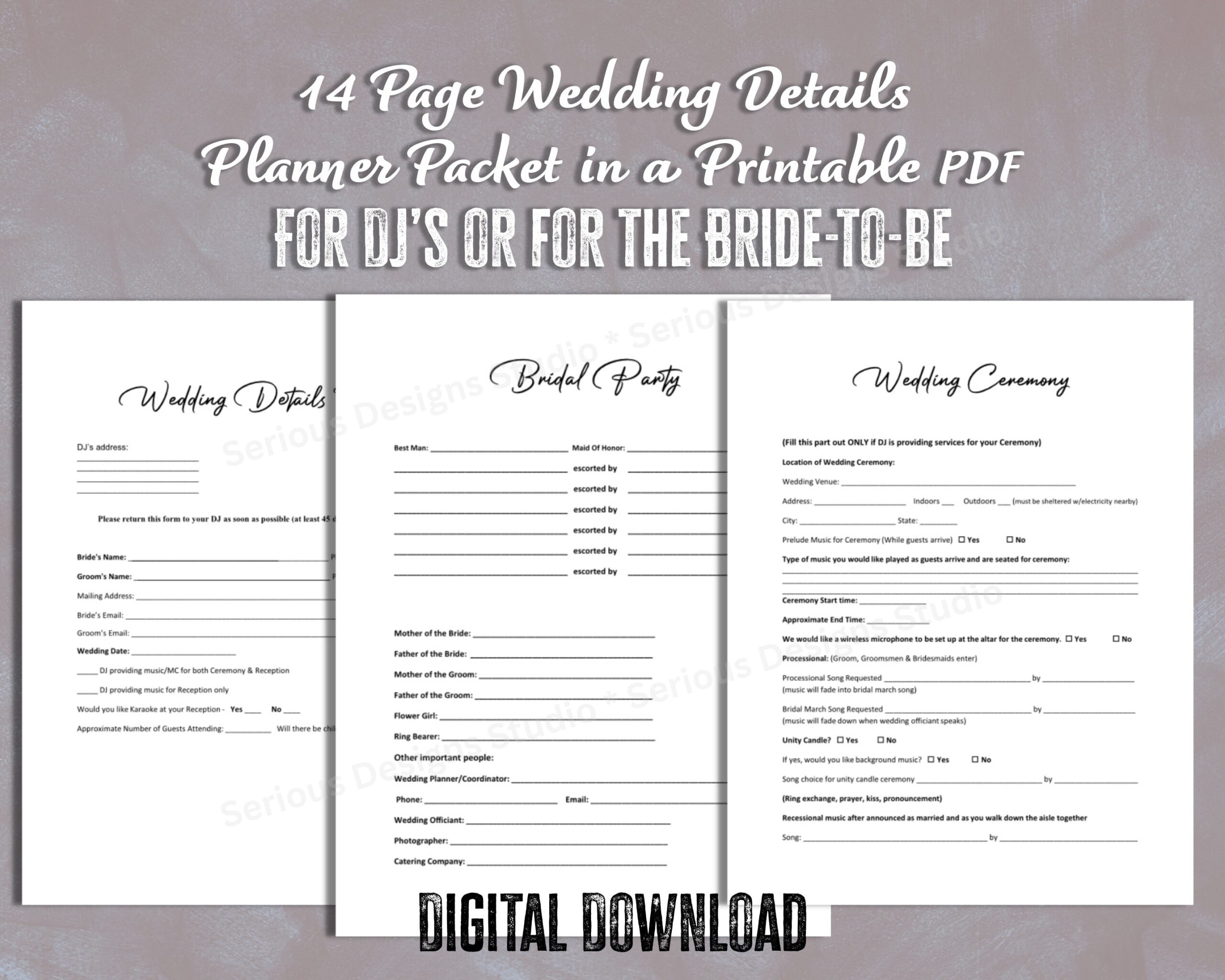 DJ Wedding Form Printable Planner For DJ Wedding Dj Form Wedding Timeline Bridal Party List Wedding Itinerary Dj Song List Etsy
