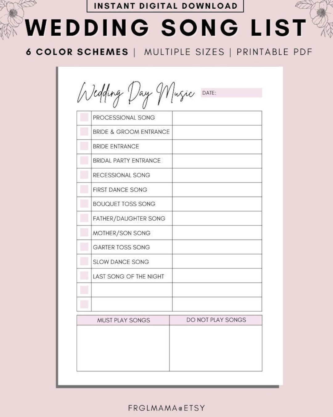Wedding Music Checklist Template Wedding Planning Wedding Organization Wedding Printable Digital Download Flowers Floral Elegant Etsy UK