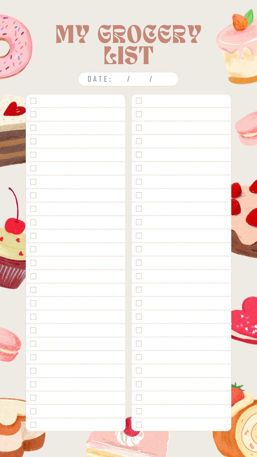 Grocery List Template Cute