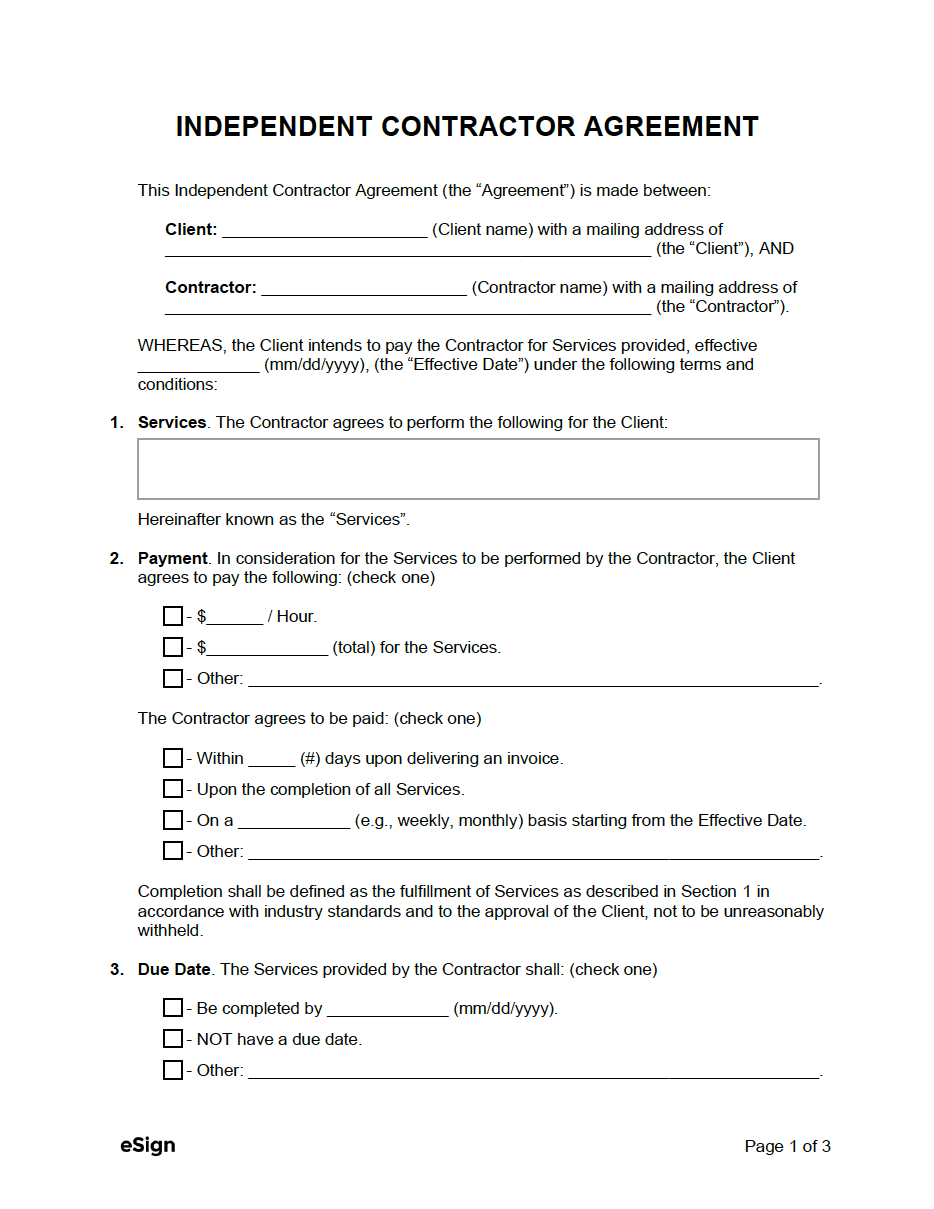 Idependent Contractor List Template
