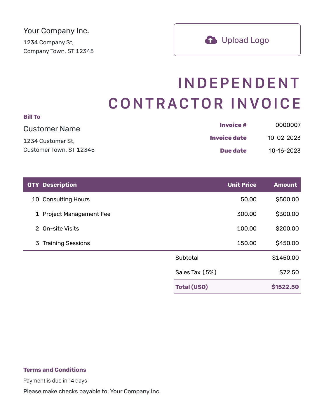 Free Independent Contractor Invoice Template Docelf