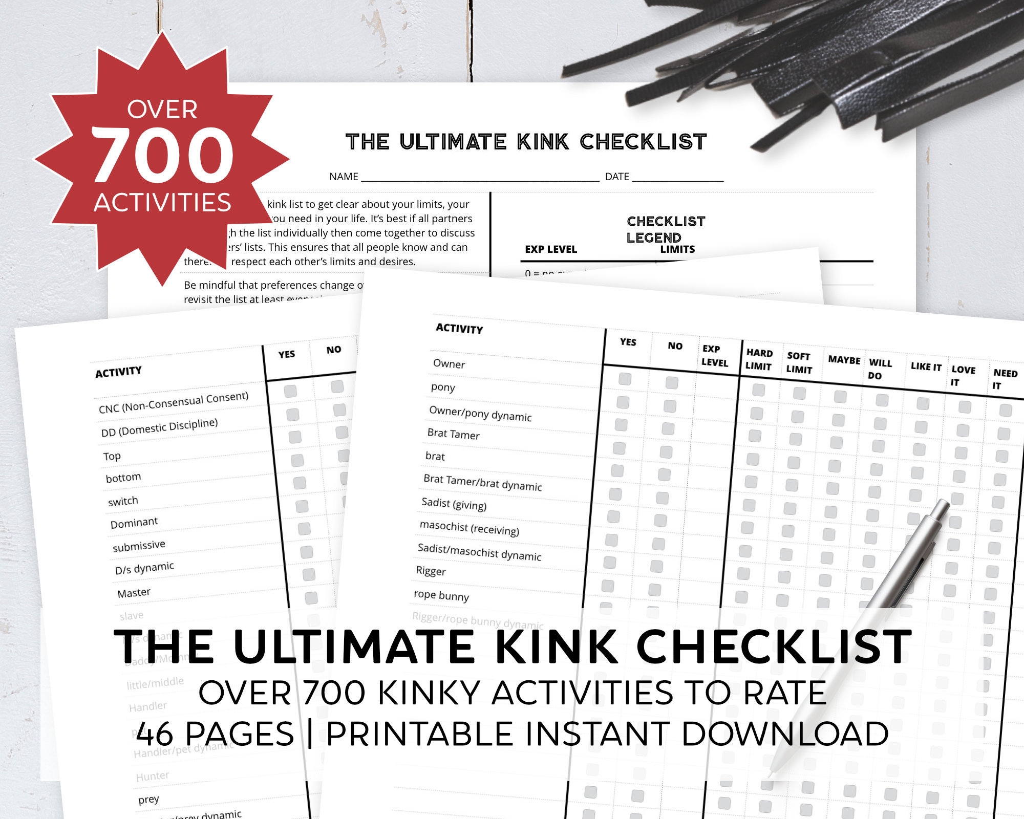 The Ultimate Kink Checklist For Submissives 712 Kinky Activities To Rate Discipline BDSM Instant Download Etsy