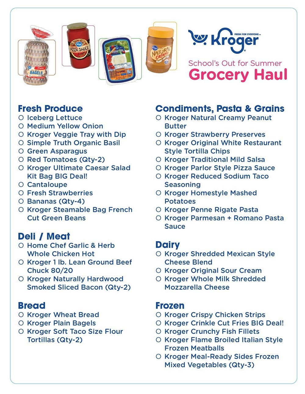 Kroger Grocery List Template