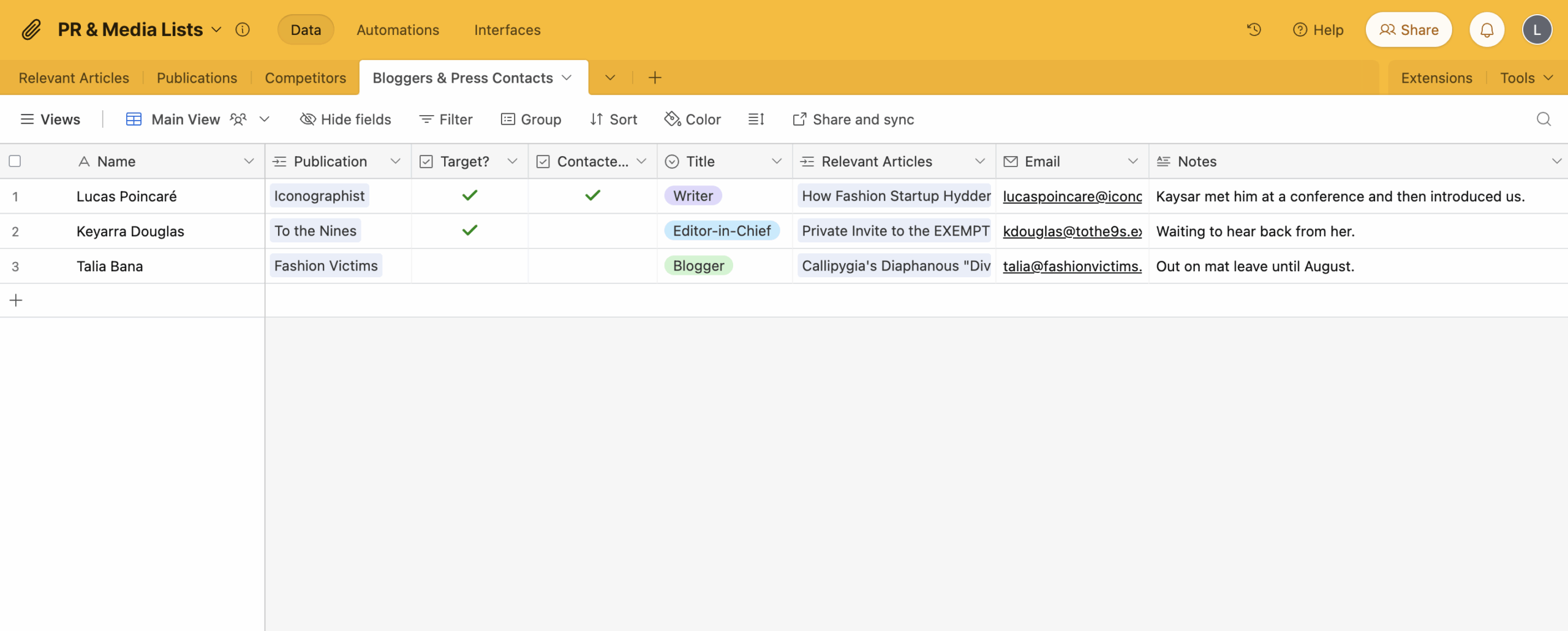 With a media list template, you can segment your contacts based on their beat or interests. This allows you to tailor your pitches accordingly, increasing your chances of getting coverage for your stories or products.