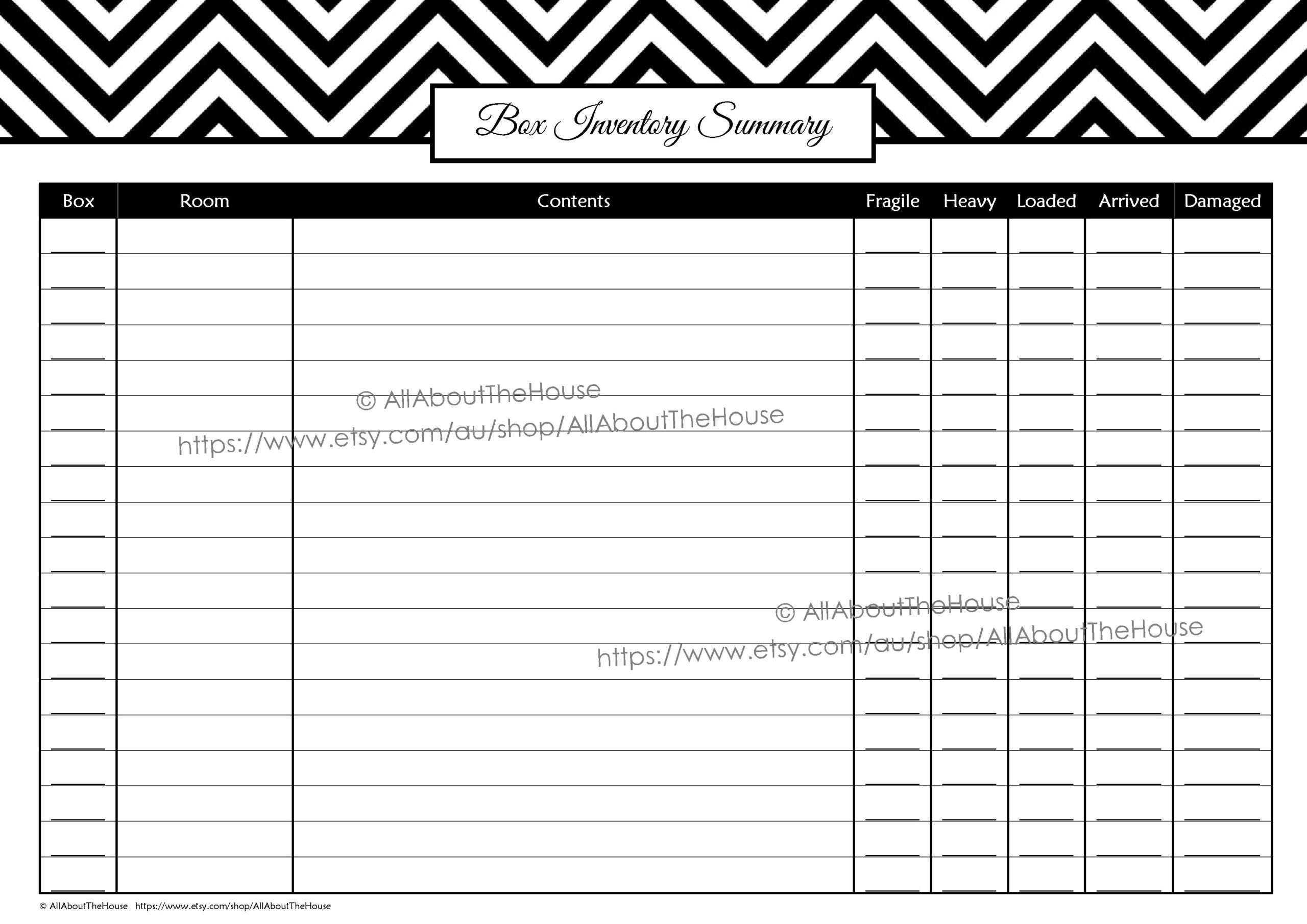 Moving Box Inventory List Keep Track Of What Is In Each Box Etsy
