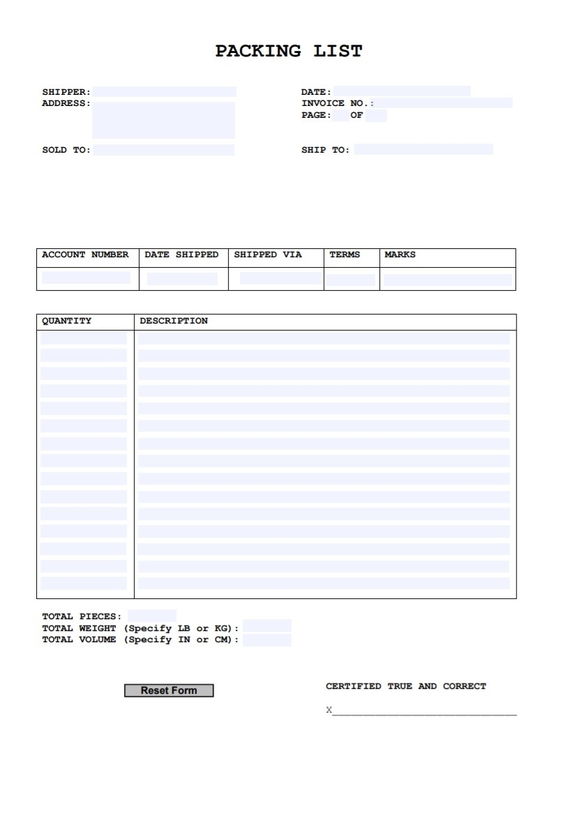 Packing List Template Word