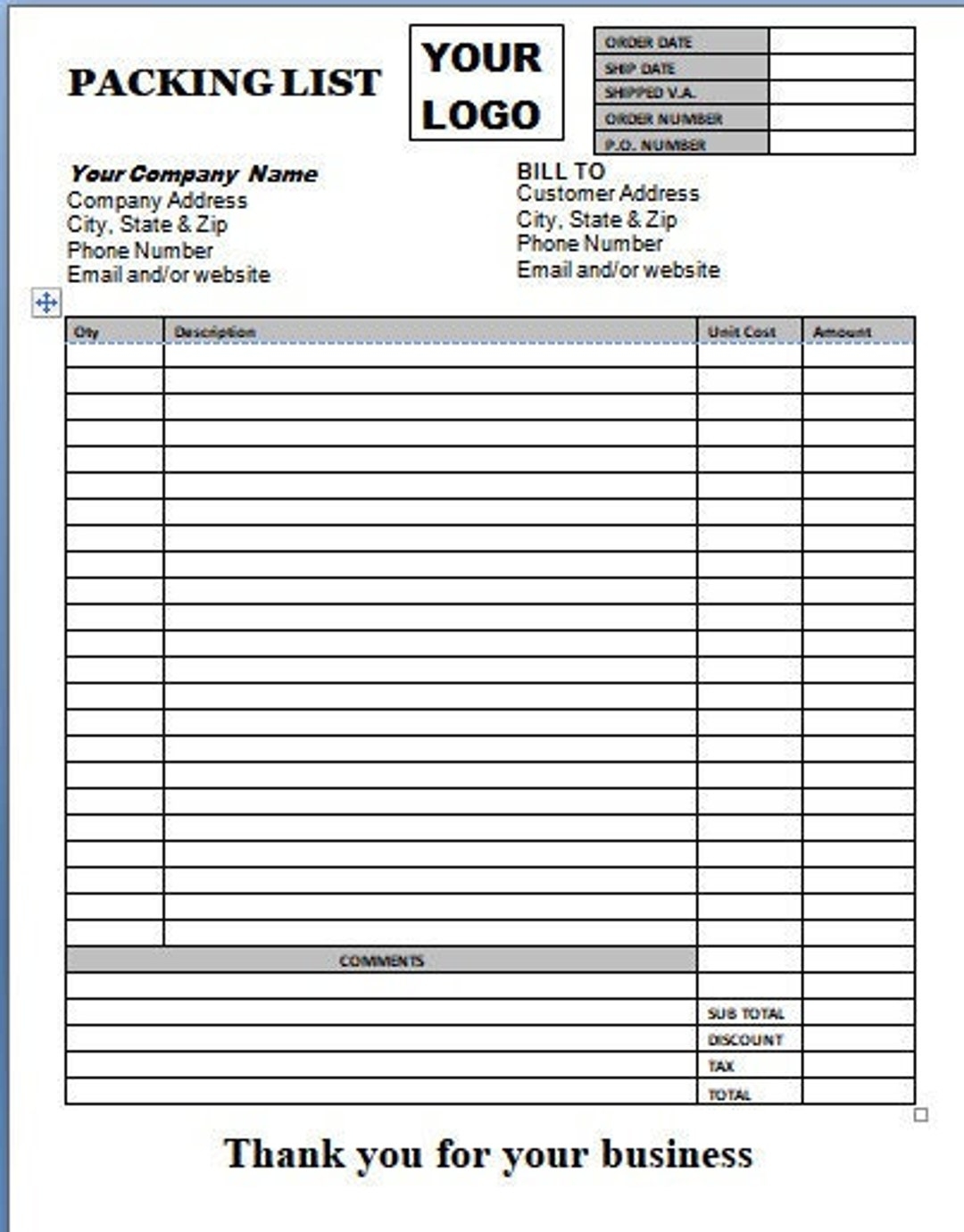 Packing List Template Printable Packing List Order Form Word Packing List Template Word Template Printable Gray Etsy