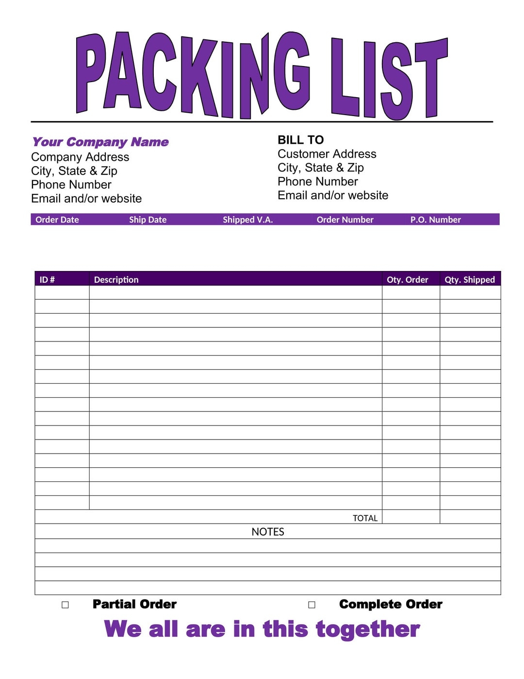 Packing List Template Purple Printable Packing List Order Form Word Packing List Template Word Template Printable Etsy UK