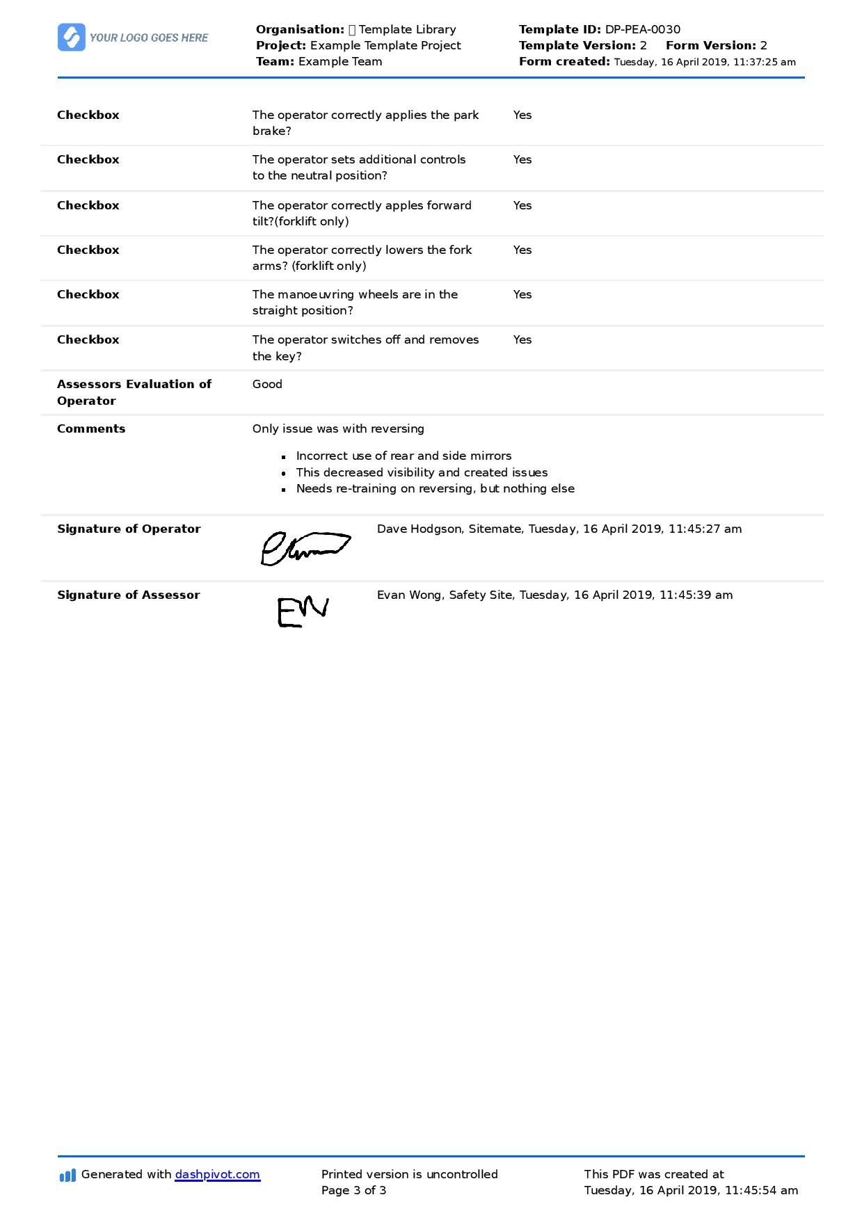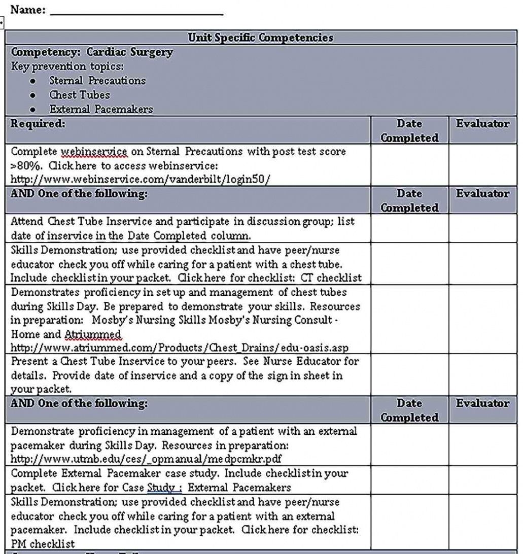 Printable Blank Competency Checklist Template