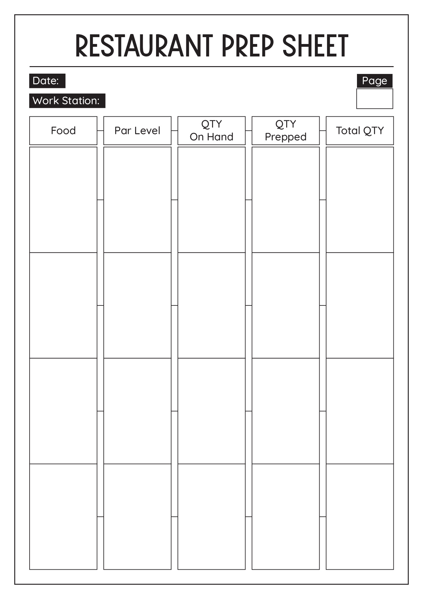 Printable Free Kitchen Prep List Template